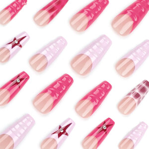 跨境欧美3D法式红色穿戴甲长款爆款五角星点钻美甲甲片成品批发 数量
