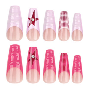 / 跨境欧美3D法式红色穿戴甲长款爆款五角星点钻美甲甲片成品批发
