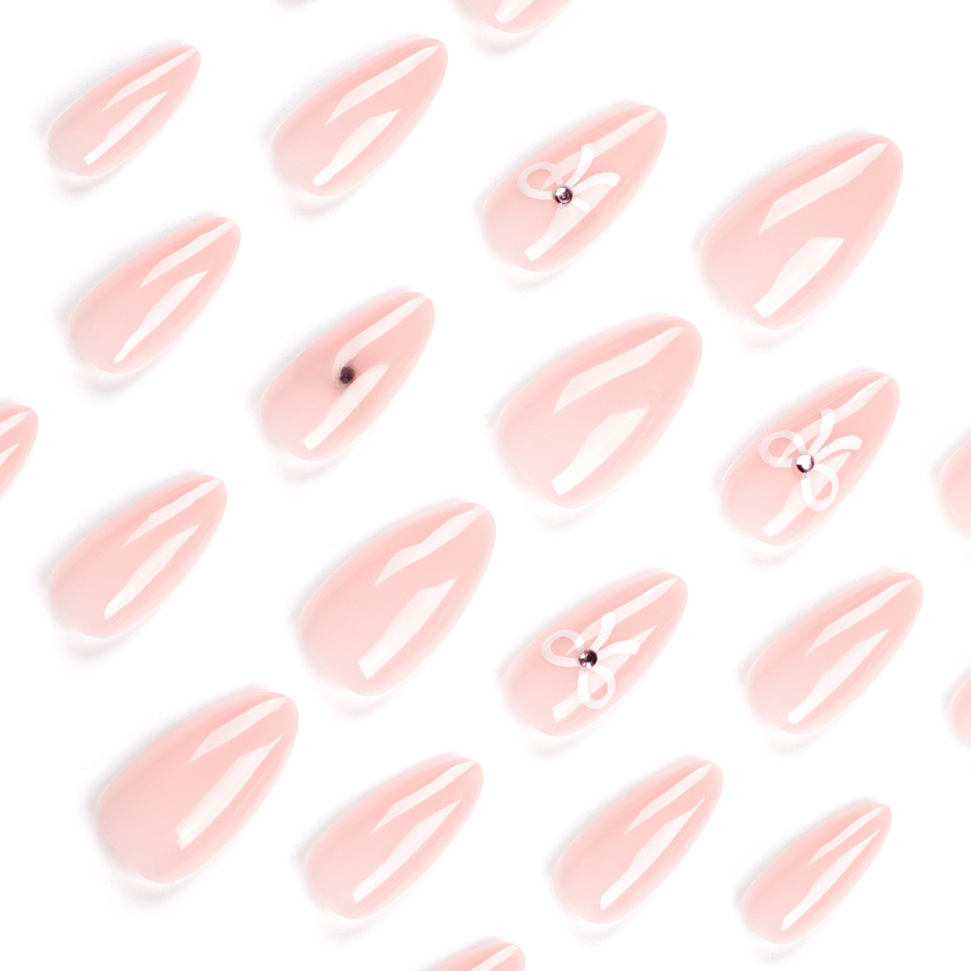 Little red book simple white bow wear nail short nude ins nail art press o n nails wholesale