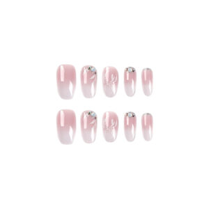 / 美甲片粉白渐变穿戴甲短款花瓣水钻美甲贴片穿戴甲穿戴式美甲批发