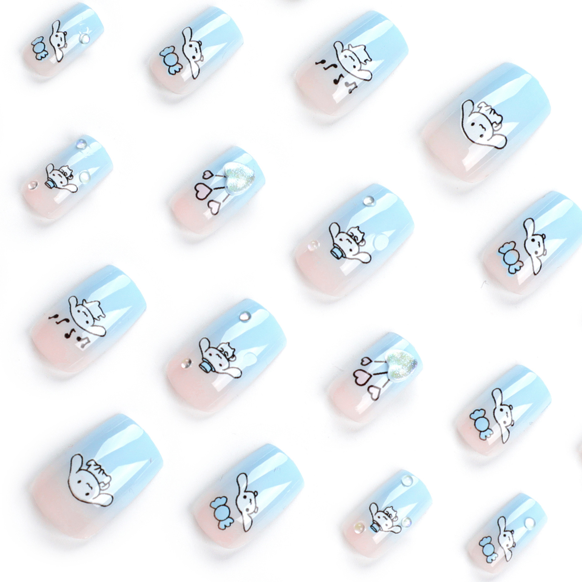 / 粉蓝渐变穿戴甲甲片玉桂狗爱心音符穿戴式美甲可爱小狗美甲片批发