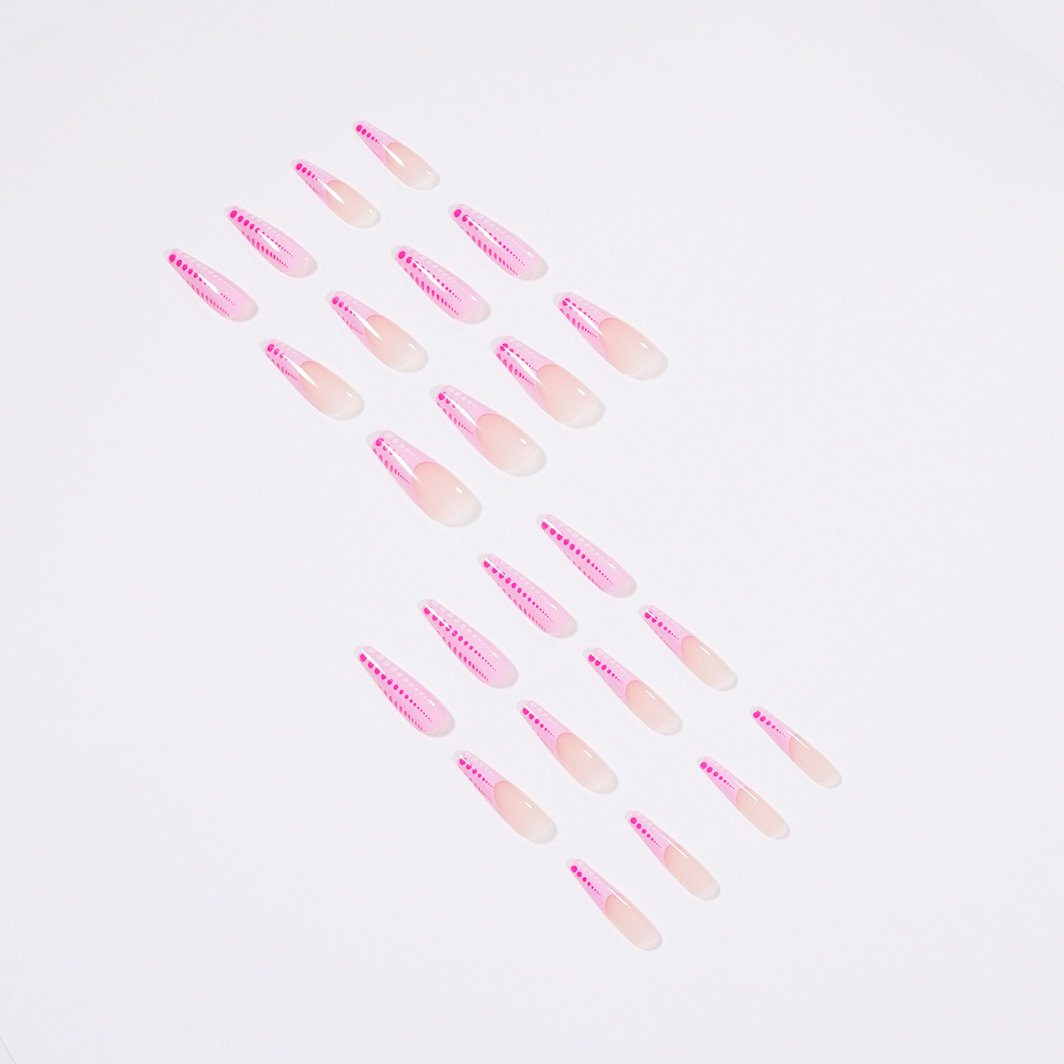 Peach Pink French Plum Drill Drops Long Ballet Wearable Nail Art Finished Fake Nails Nail Patch Nail Patch