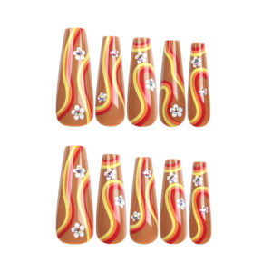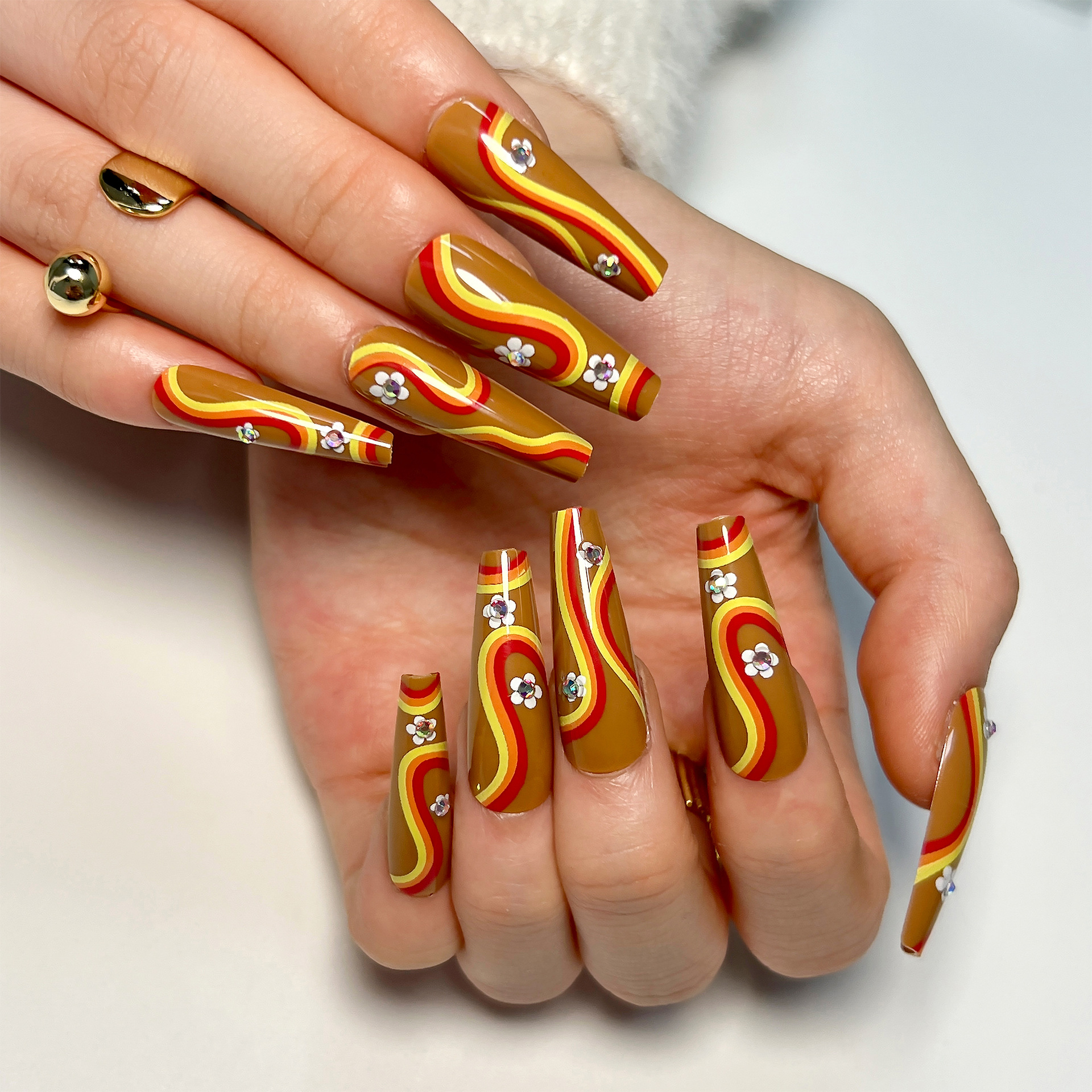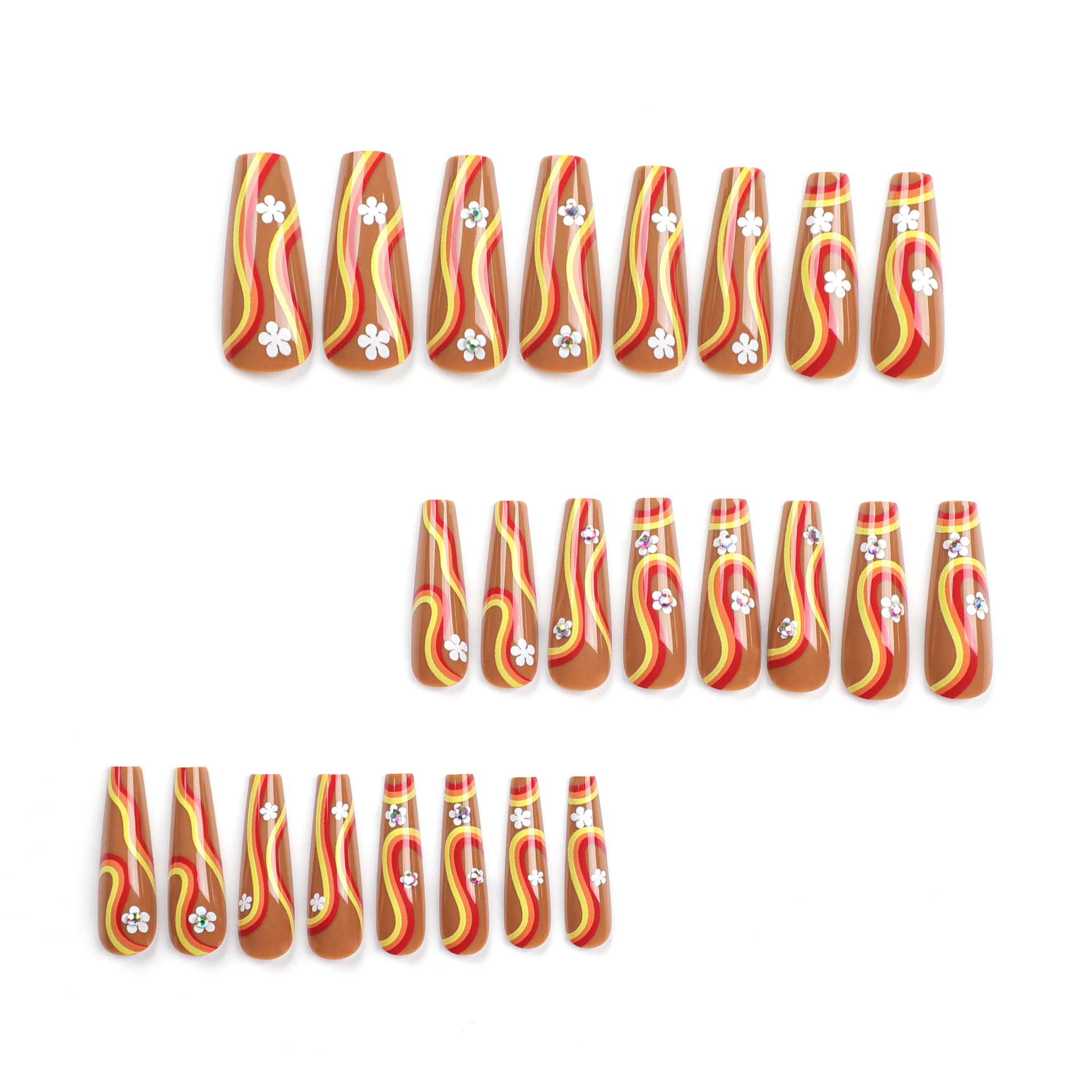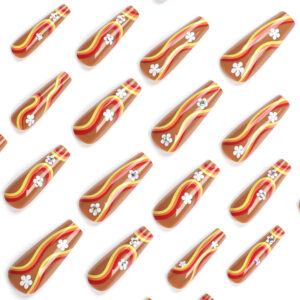 秋冬显白暖色系穿戴甲美拉德波浪条纹美甲甲片花朵镶钻假指甲批发秋冬显白暖色系穿戴甲美拉德波浪条纹美甲甲片花朵镶钻假指甲批发