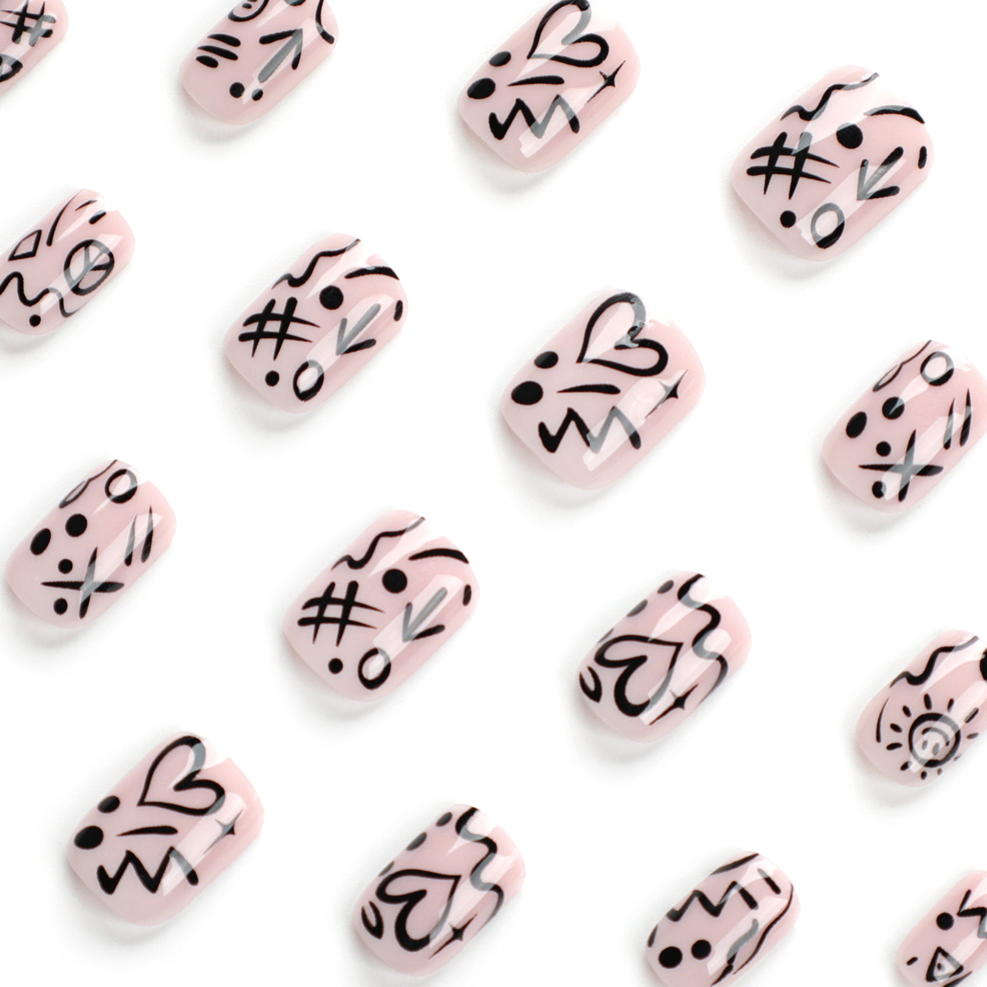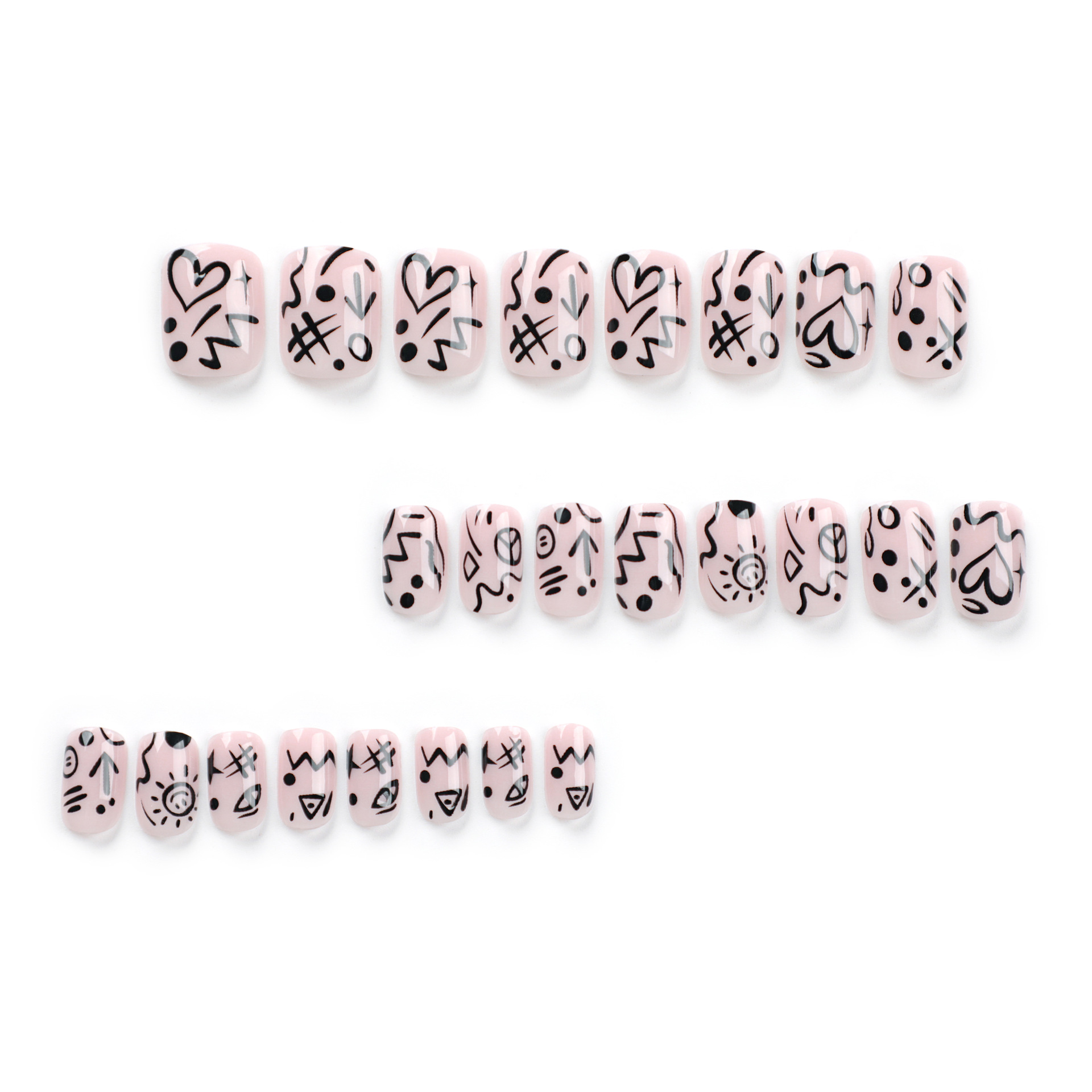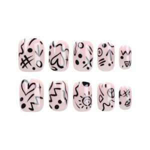 短款粉色穿戴甲片假指甲卡通涂鸦指甲片指甲贴穿戴式美甲片批发