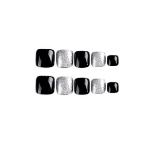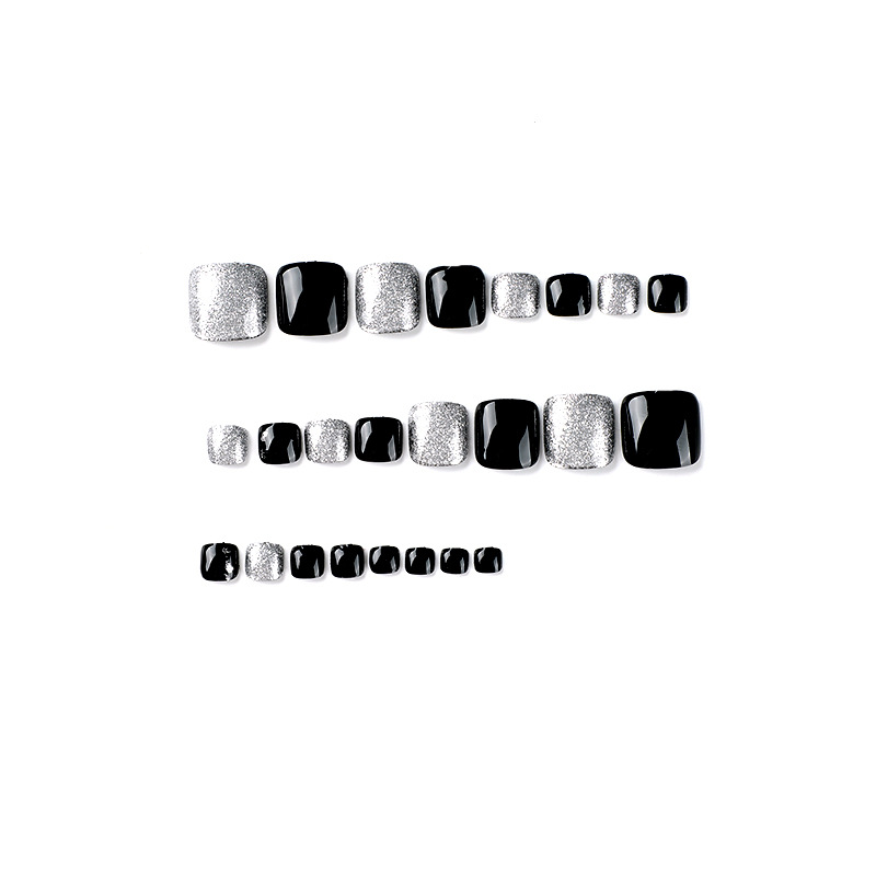 短款穿戴甲黑色脚指甲贴片银色闪粉穿戴式指甲贴press on nails短款穿戴甲黑色脚指甲贴片银色闪粉穿戴式指甲贴press on nails