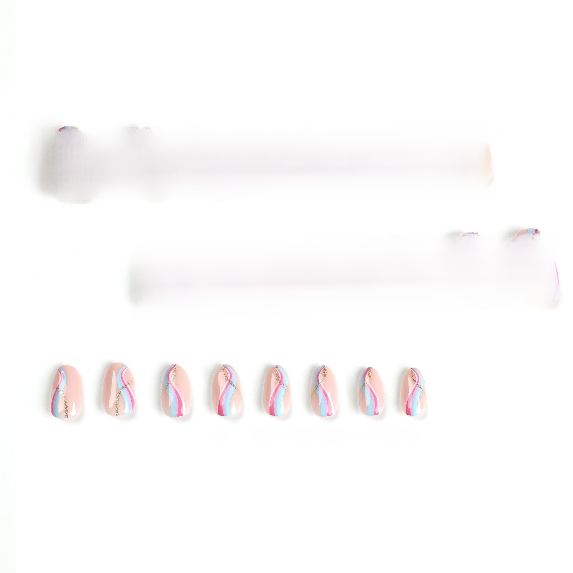 Wearable Nail Patch Short Pink Blue Purple Splicing Wave Nail Stickers Removable Nail Patch Gold Glitter Nail Patch$0.68选择选项