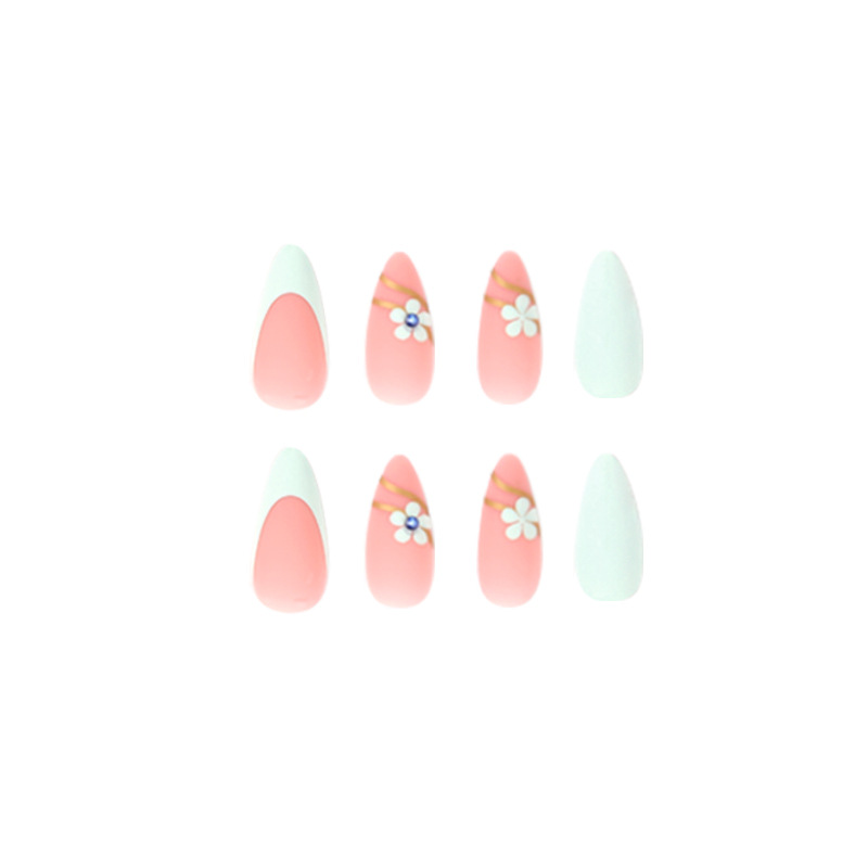 穿戴甲甲片绿色法式磨砂小花蓝色水钻穿戴甲批发成品美甲贴片批发