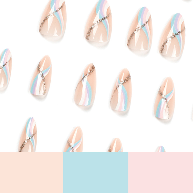 / 穿戴甲甲片简约四色波浪美甲贴片闪粉假指甲片批发穿戴甲批发成品