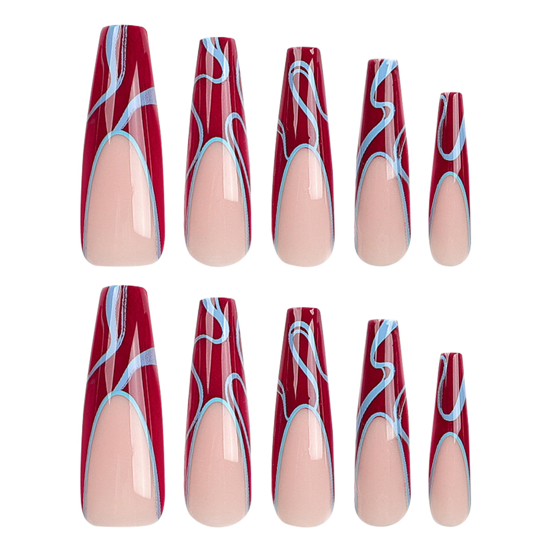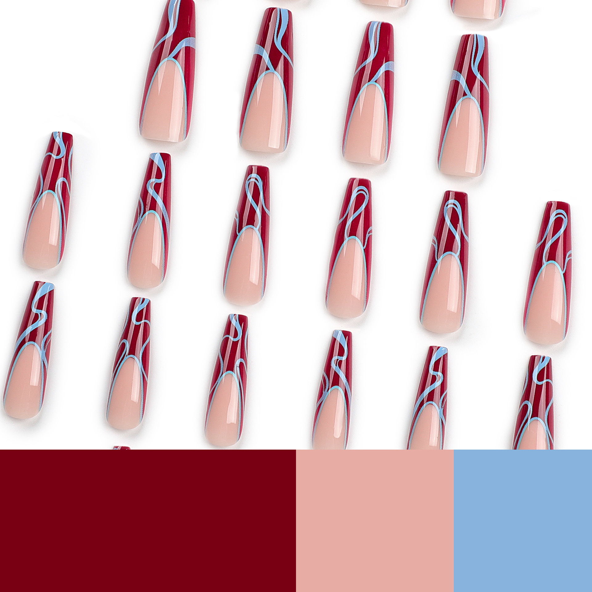 跨境欧美法式红色美甲蓝色扭曲条纹甲片成品批发超长款芭蕾穿戴甲 数量