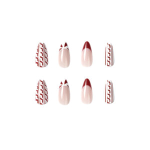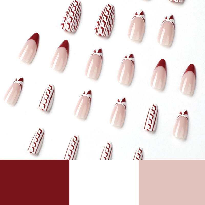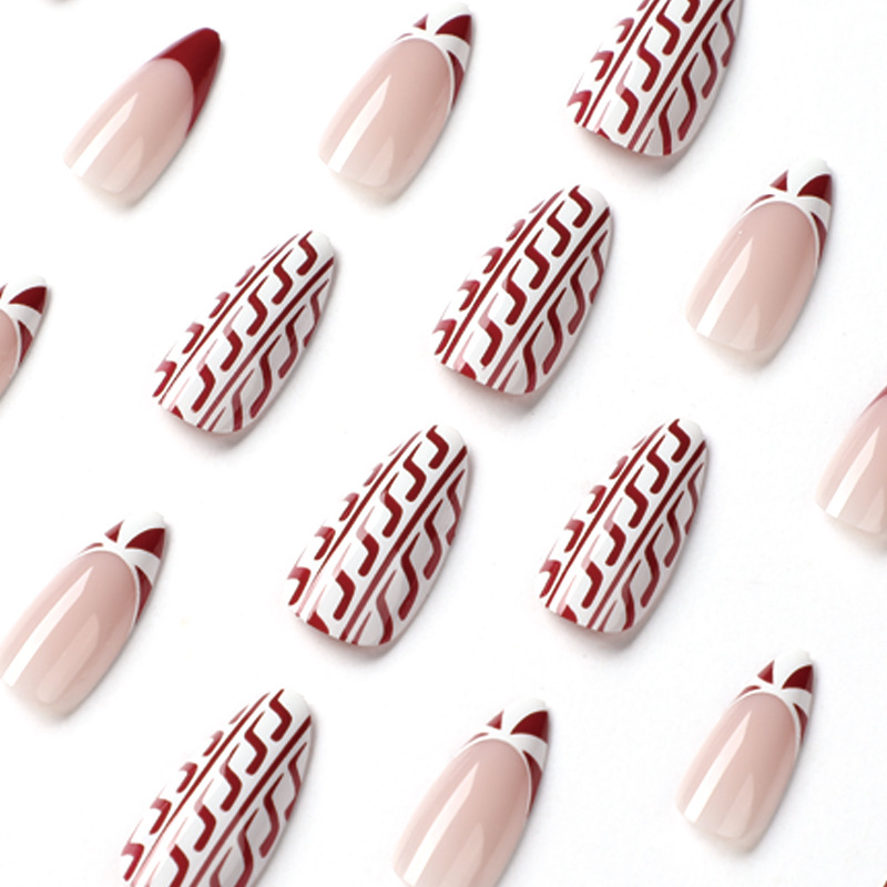甲片成品批发法式红边圣诞款几何指甲贴片甲贴成品可拆卸美甲片