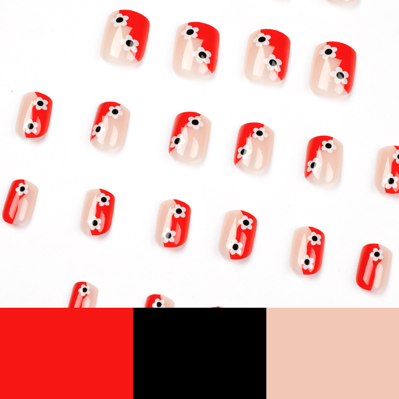 美甲甲片批发不规则红色甲片小花穿戴美甲假指甲指甲贴片批发nail