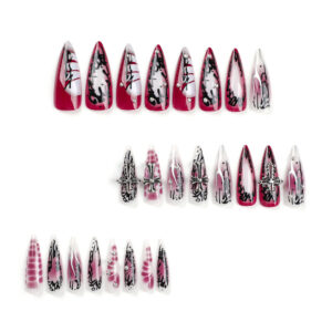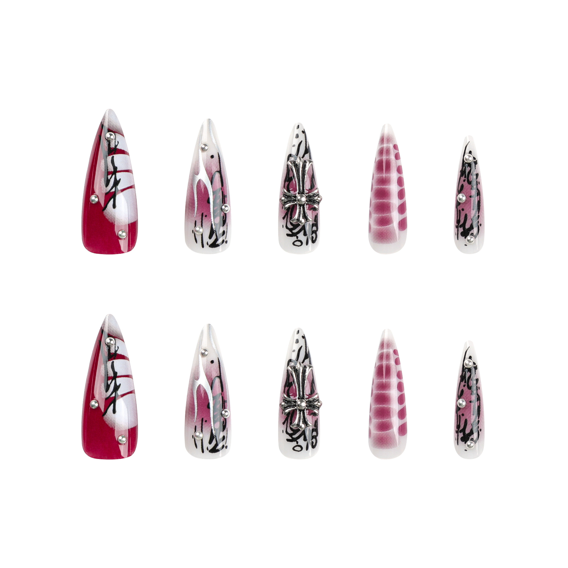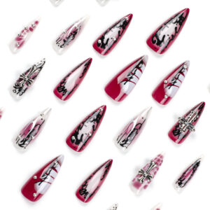 欧美辣妹穿戴甲甲片暗黑十字架美甲指甲片烫银晕染假指甲指甲片 cantidad