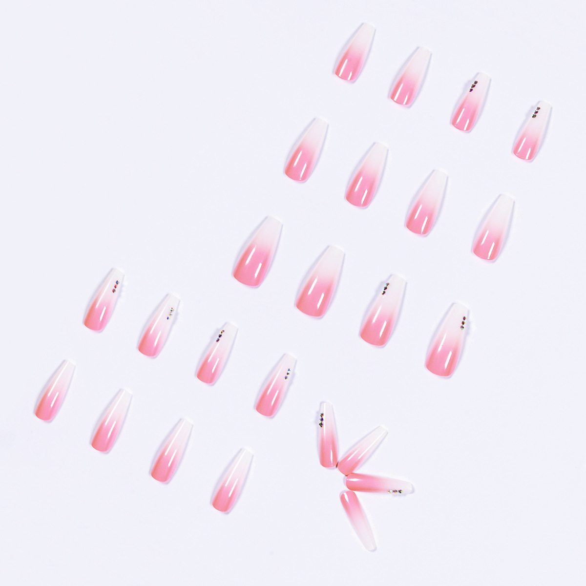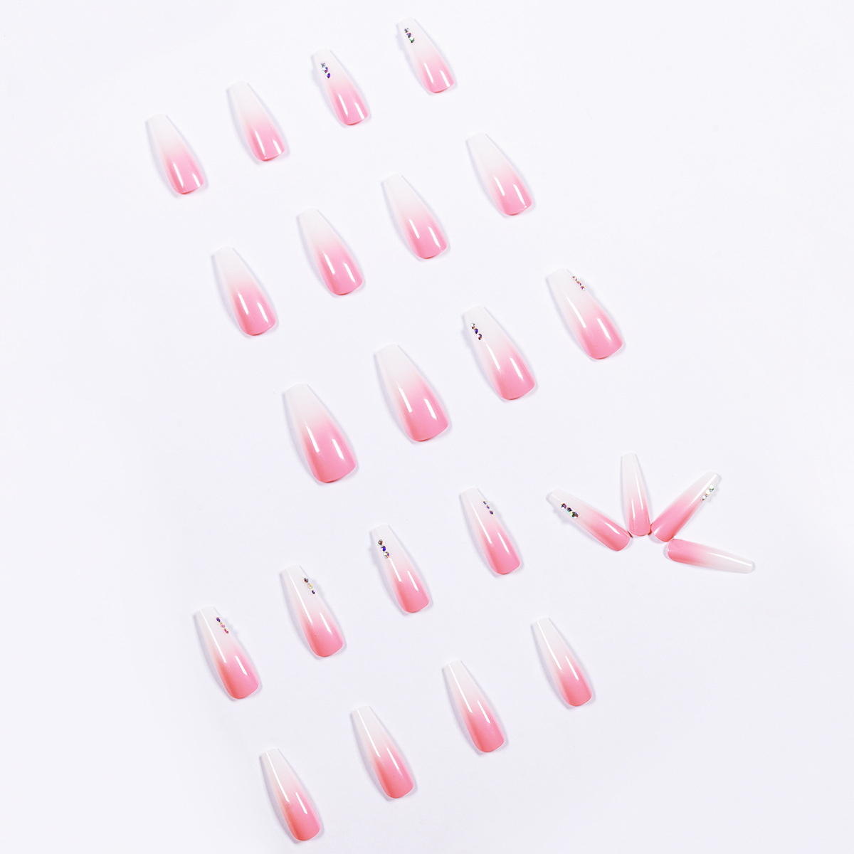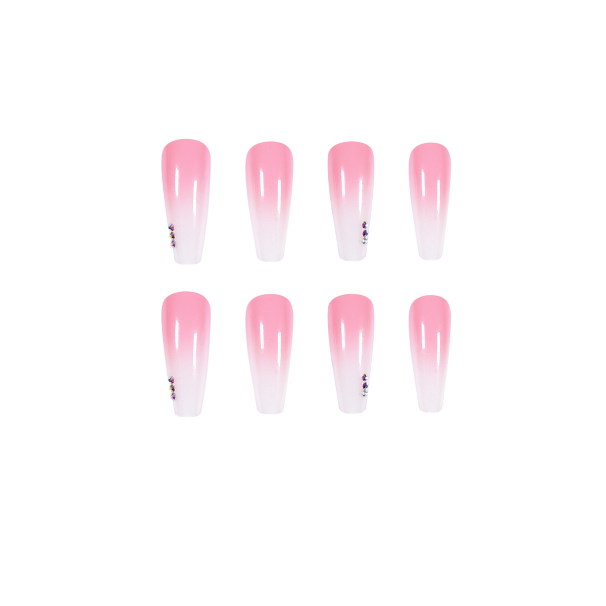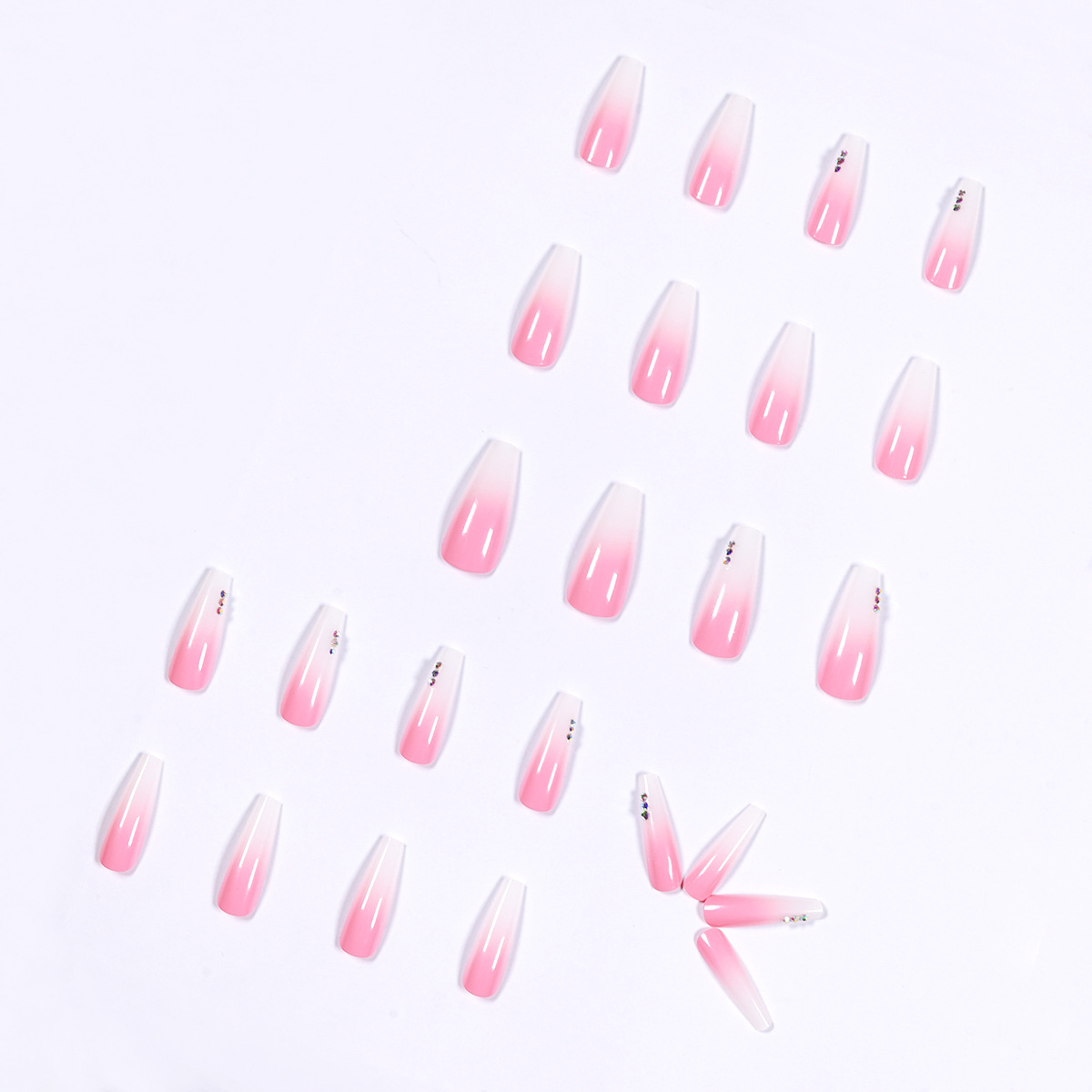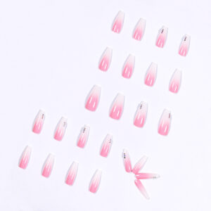 渐变粉色水钻穿戴美甲成品假指甲美甲贴片指甲贴片可拆卸甲片跨境 cantidad