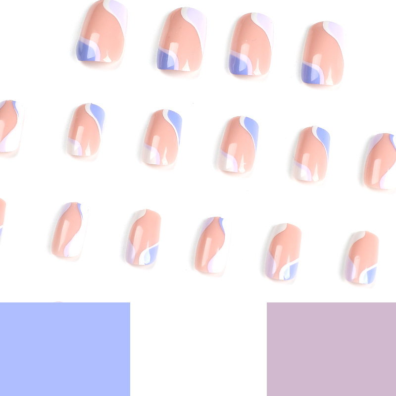 穿戴甲批发紫白拼接波浪斜法式美甲片可拆卸可穿戴甲片成品nails cantidad