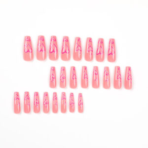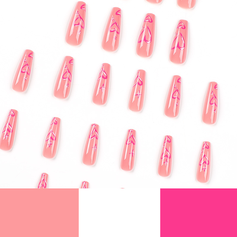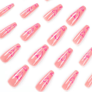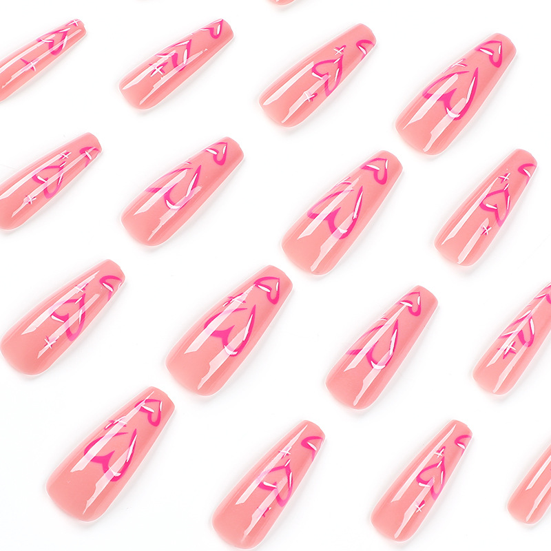 穿戴甲甲片批发粉色爱心美甲穿戴甲批发中长款指甲贴片批发nails cantidad