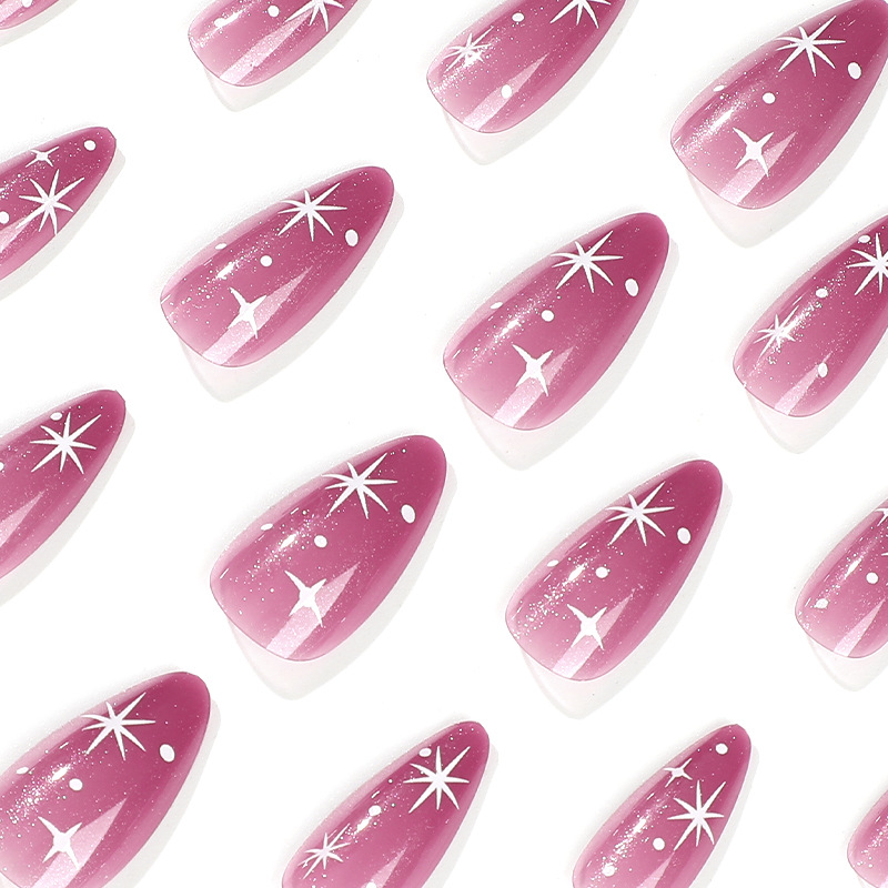 穿戴甲甲片紫色打底搭配白色星芒指甲贴片闪粉穿戴式美甲甲片成品
