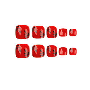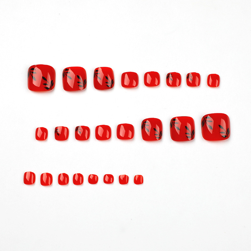 穿戴甲甲片红色脚甲树叶指甲片美甲贴片成品批发press on nails cantidad