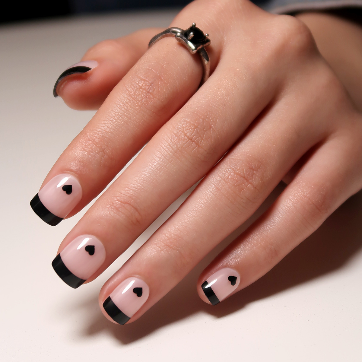 穿戴甲 法式黑边	穿戴甲美甲简约爱心穿戴美甲高级穿戴甲成品nail穿戴甲 法式黑边 穿戴甲美甲简约爱心穿戴美甲高级穿戴甲成品nail