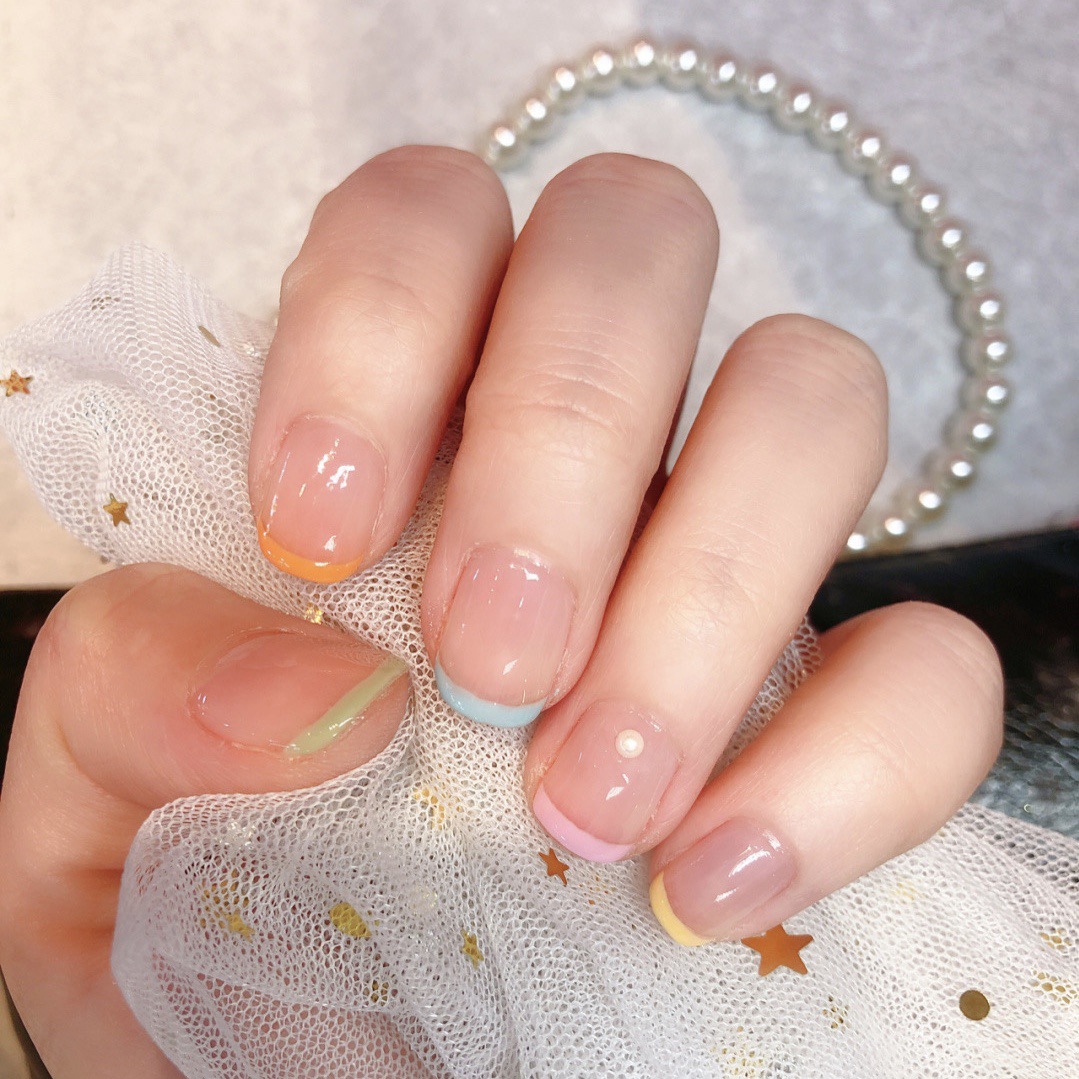 Candy Colour French Fresh Pearls Wear Nail Finished Nail Art Patch Fake Nail Patch Waterproof Removable