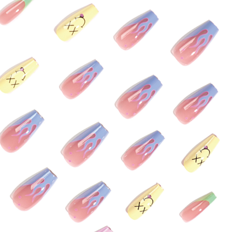 美甲甲片批发绿边法式蓝色甲片火焰笑脸闪电美甲穿戴甲批发中长款 cantidad