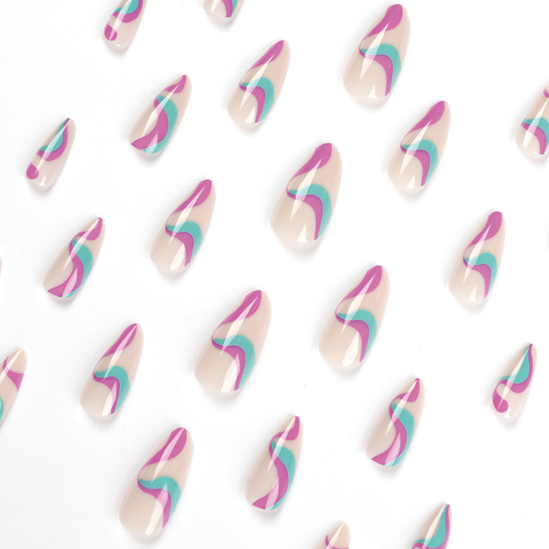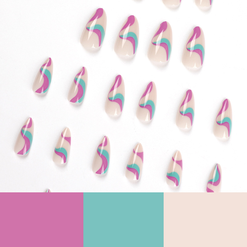 美甲贴片批发甲片蓝紫拼色简约波浪美甲片成品可拆卸高级 nails