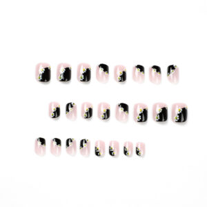 美甲贴片批发甲片黑法式小花穿戴甲短款美甲穿戴甲甲片批发nails cantidad