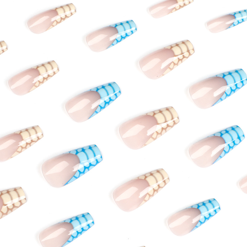 蓝黄鸳鸯鳄鱼纹穿戴甲甲片假指甲指甲贴可拆卸甲片美甲片批发 cantidad