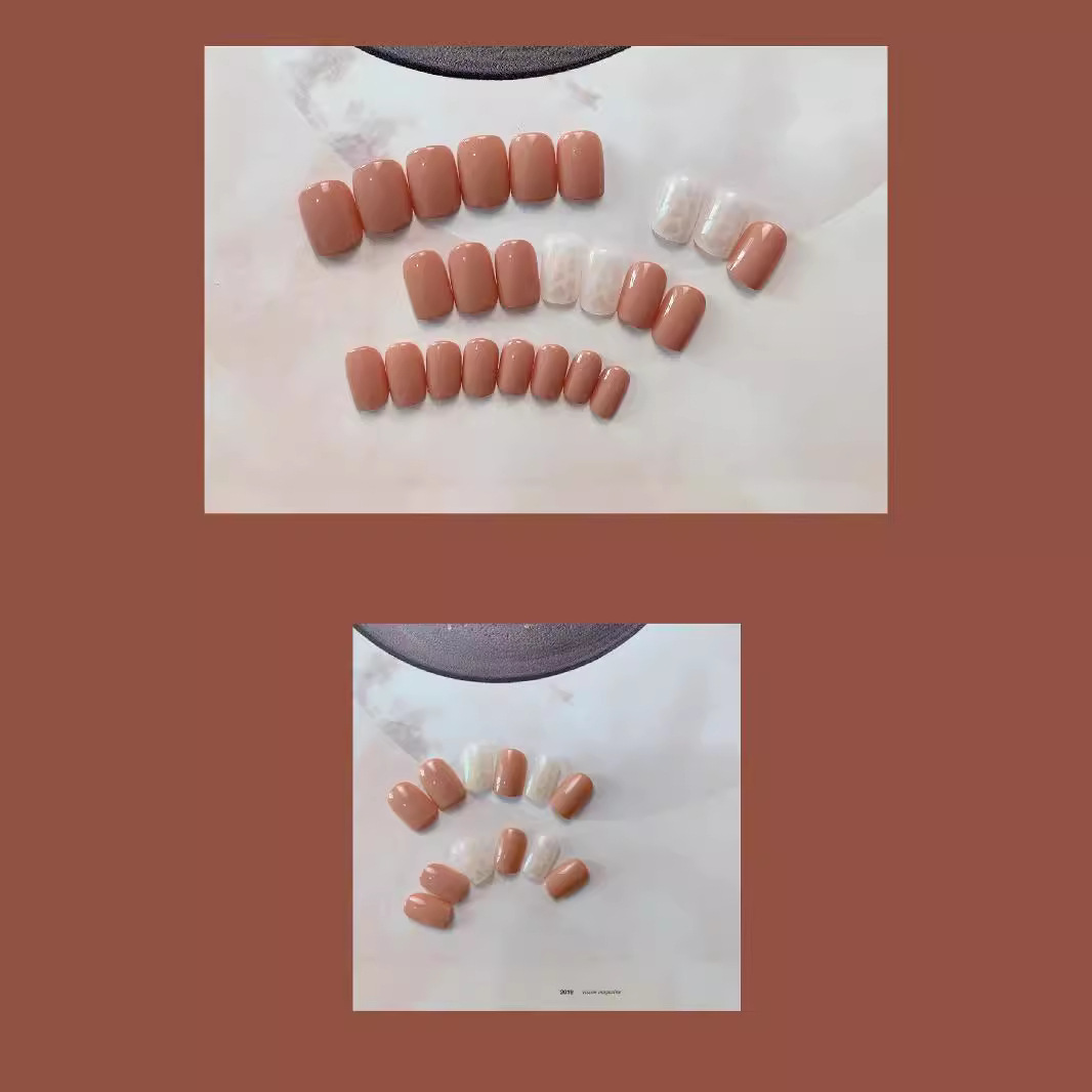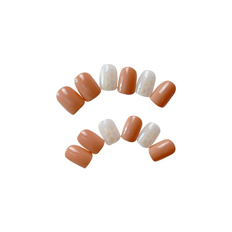 / 裸色贝壳秋冬穿戴甲成品假指甲美甲贴片可拆卸甲片环保防水指甲片