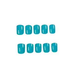 / 纯色短款湖蓝色显白穿戴甲成品假指甲美甲贴片指甲贴片防水可拆卸