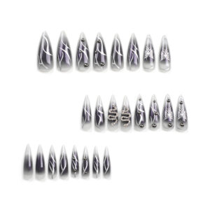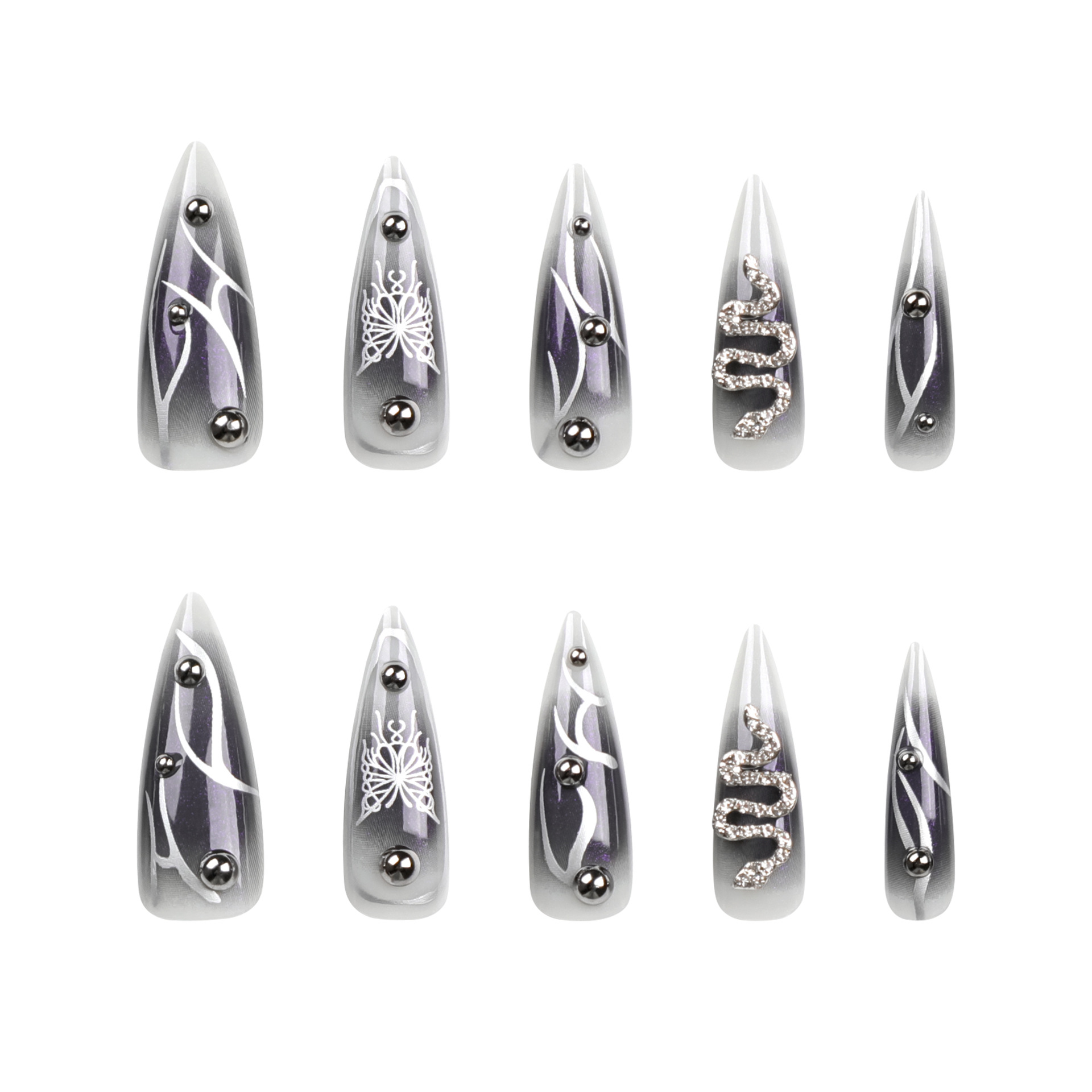 / 暗黑朋克风穿戴甲y2k蛇纹点钻美甲超长尖甲蝴蝶纹假指甲甲片批发