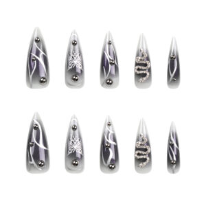 暗黑朋克风穿戴甲y2k蛇纹点钻美甲超长尖甲蝴蝶纹假指甲甲片批发 cantidad