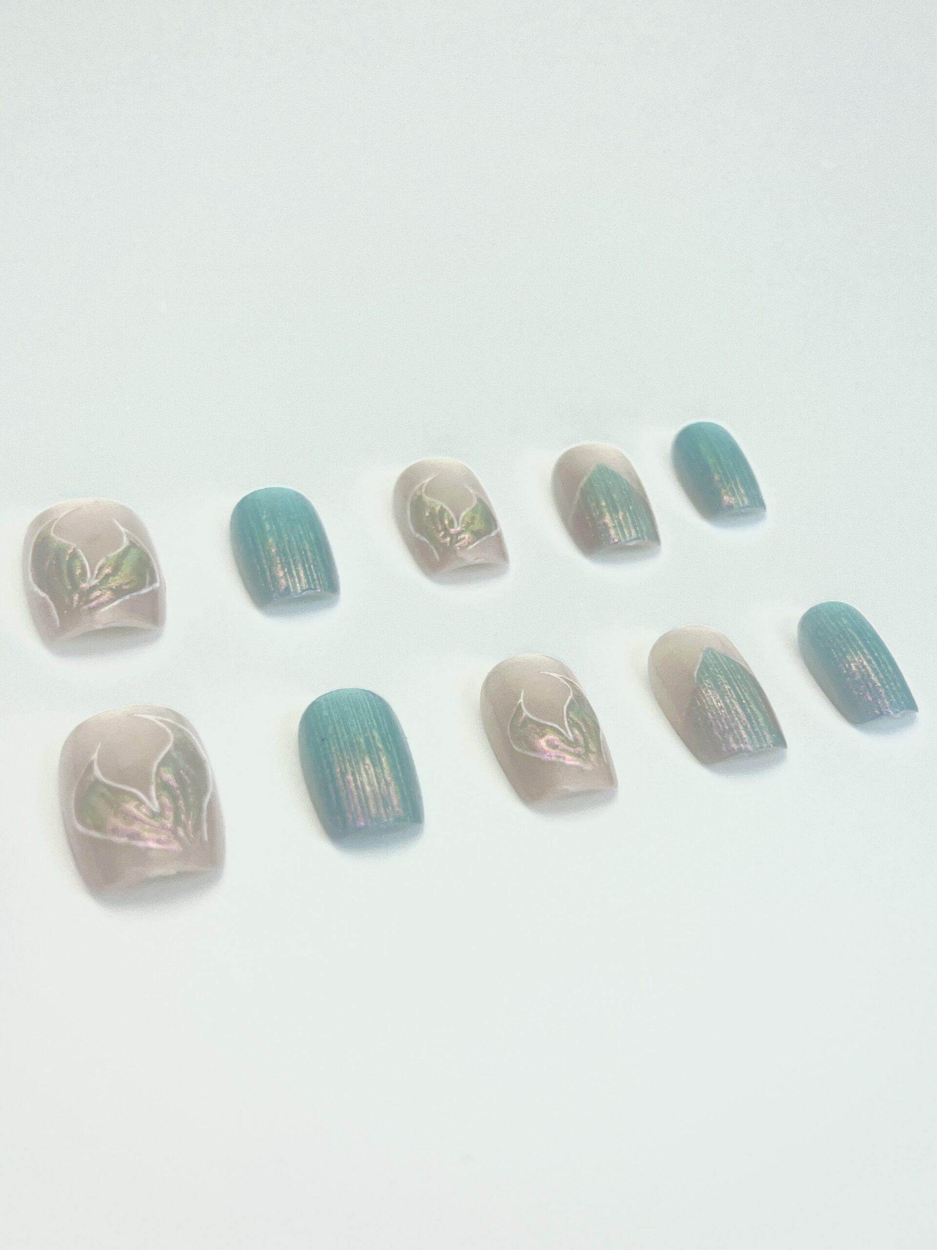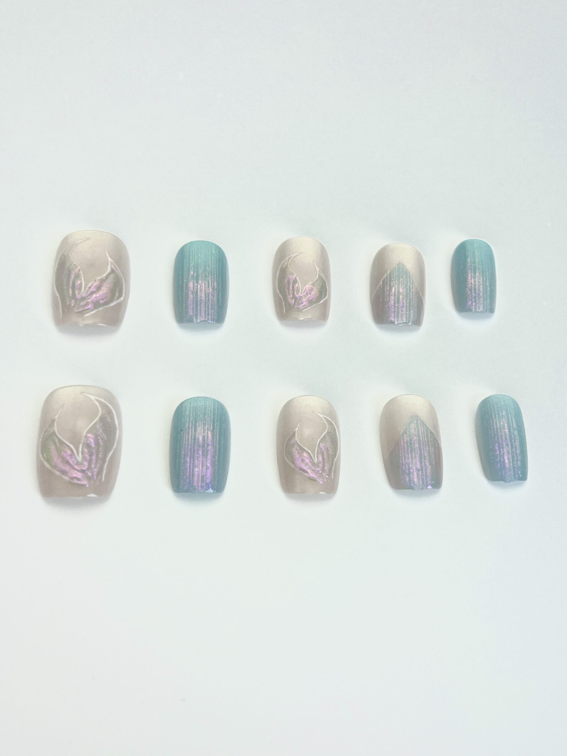 AY-0019Armadura con estampado de hojas en degradado azul y blanco