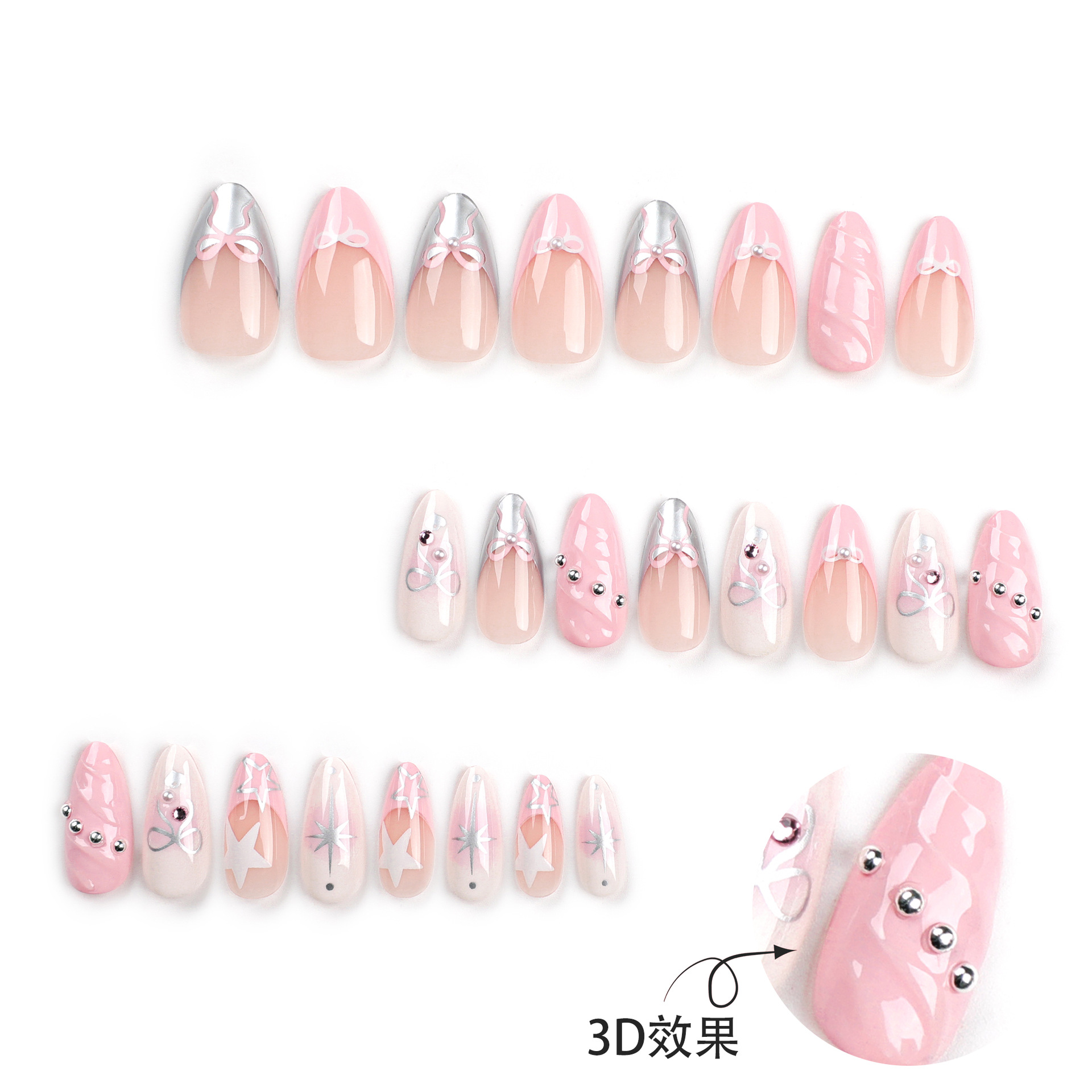 欧美法式穿戴甲片3D粉色假指甲美甲贴片可拆卸成品24片甲片批发 cantidad