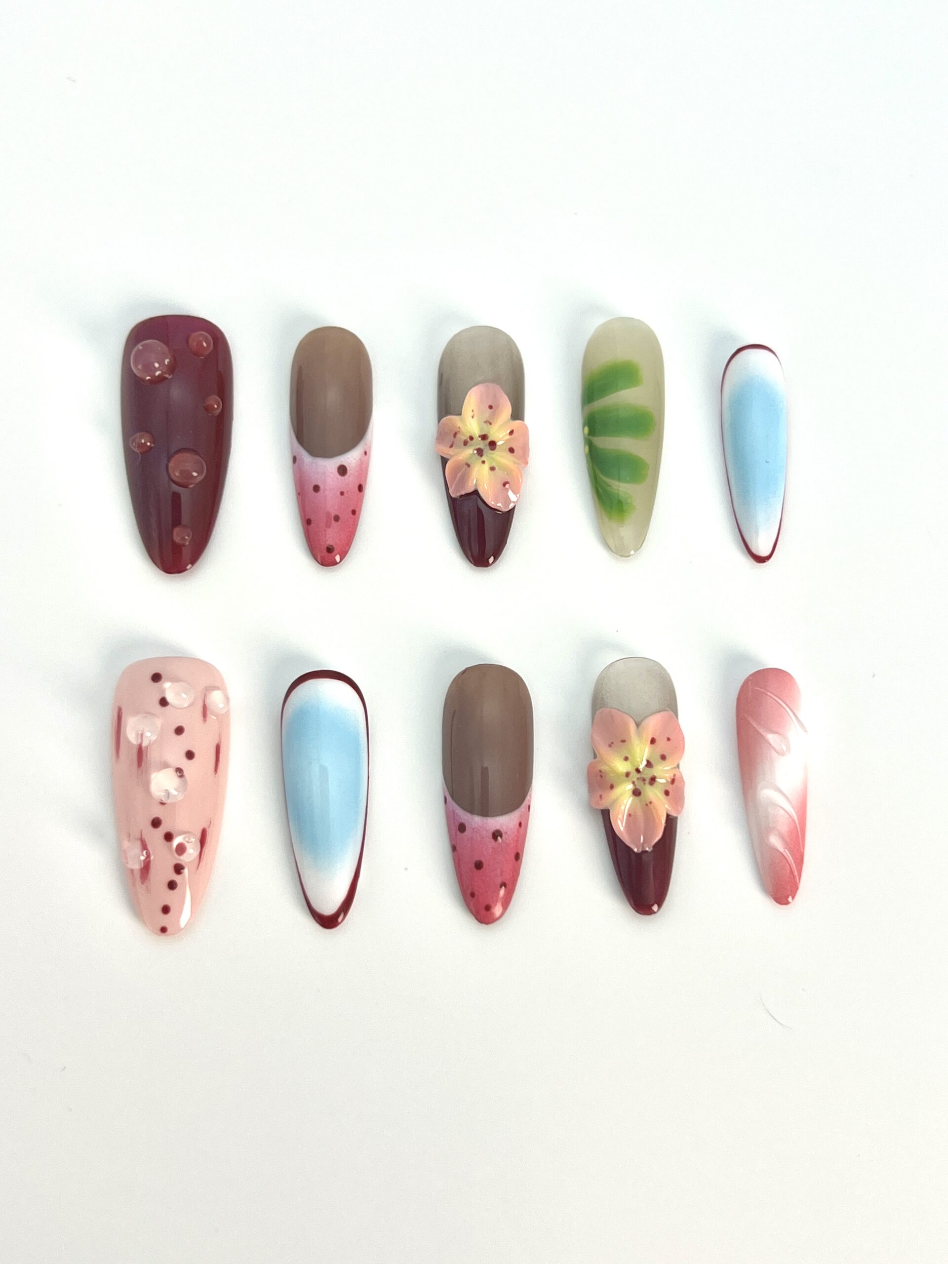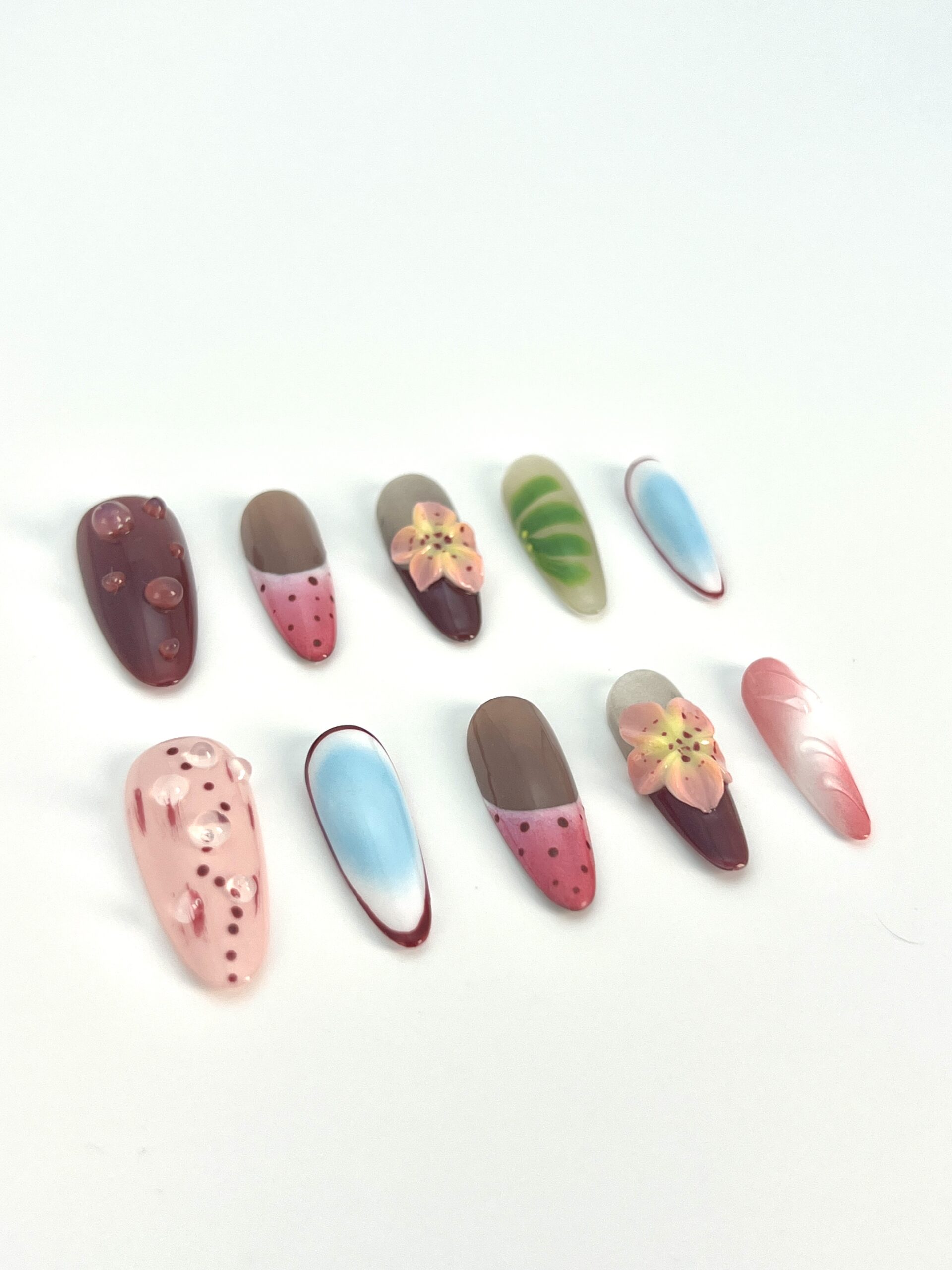 CZH-0012Púrpura, rosa, azul y otras combinaciones de colores, decoradas con flores y lunares, uñas ponibles románticas y juguetonas, estilos novedosos para satisfacer necesidades personalizadas.