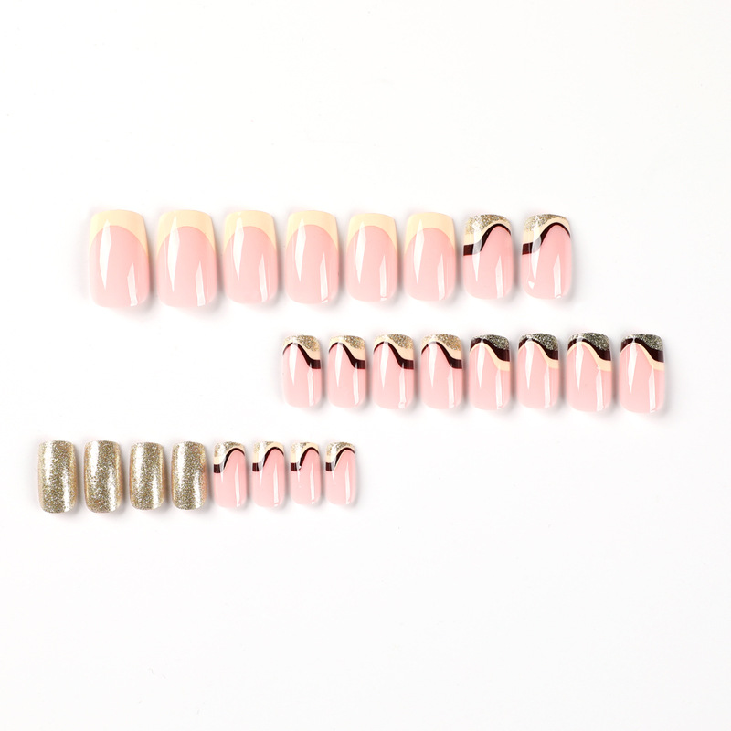 美甲贴片法式波浪金粉拼接美甲贴片穿戴甲批发假指甲片批发nails cantidad