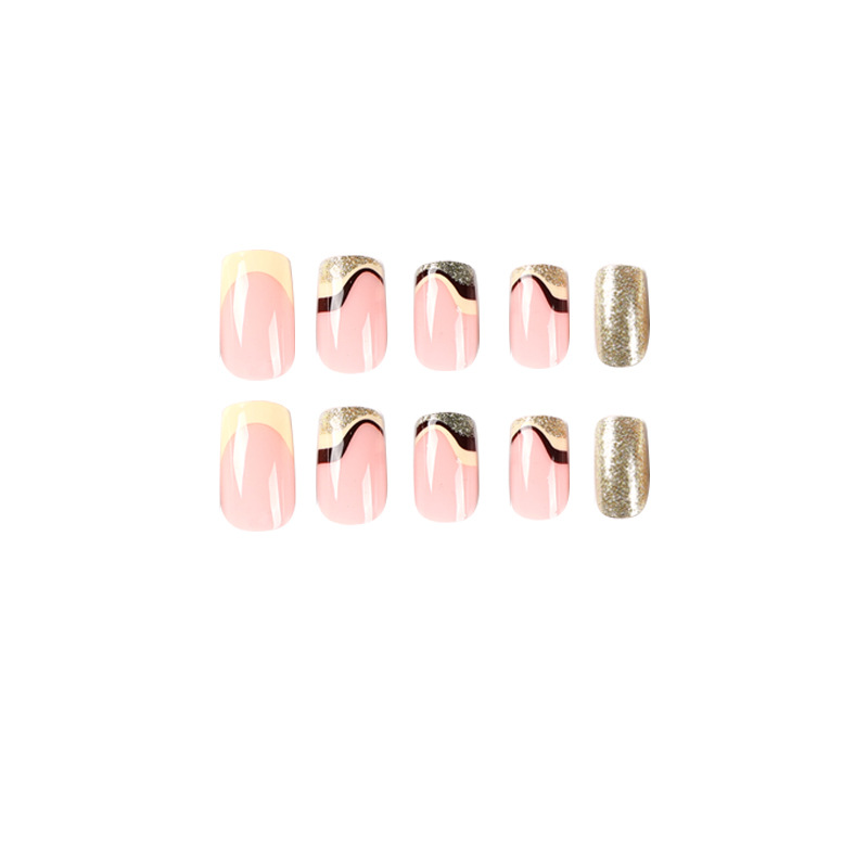 美甲贴片法式波浪金粉拼接美甲贴片穿戴甲批发假指甲片批发nails