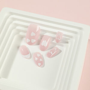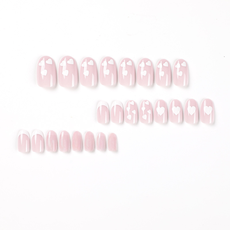 穿戴甲批发成品情人节美甲法式白边爱心美甲片美甲成品假指甲nail cantidad