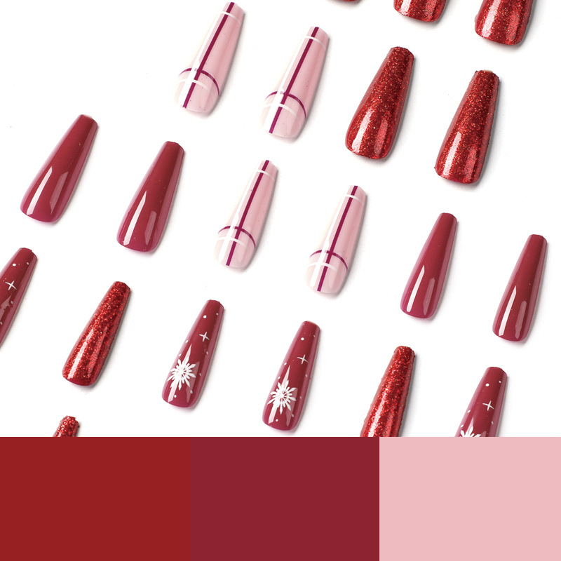 穿戴美甲圣诞闪粉雪花穿戴甲甲片甲片成品批发 press on nails cantidad