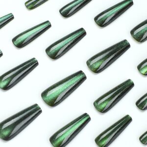 穿戴甲甲片绿琉璃色猫眼穿戴甲显白美甲贴片甲片成品长款假指甲