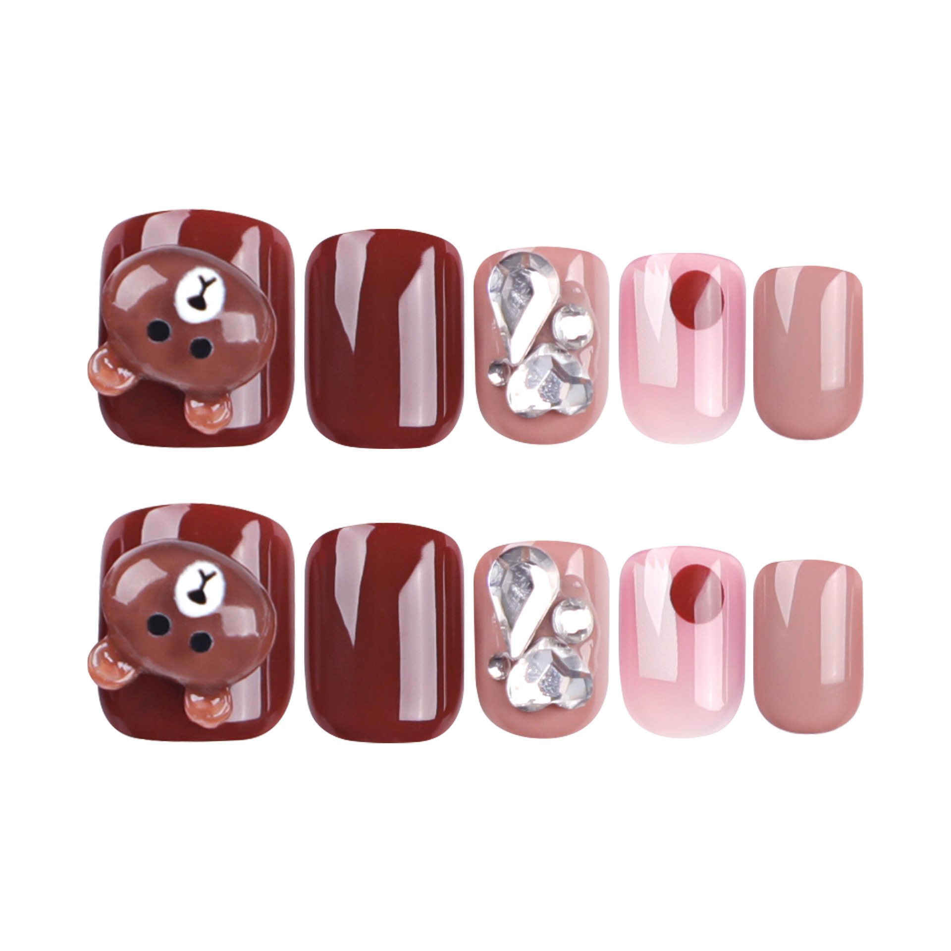 穿戴甲甲片简约纯色指甲片可爱小熊美甲false nail爆闪闪钻假指甲 cantidad