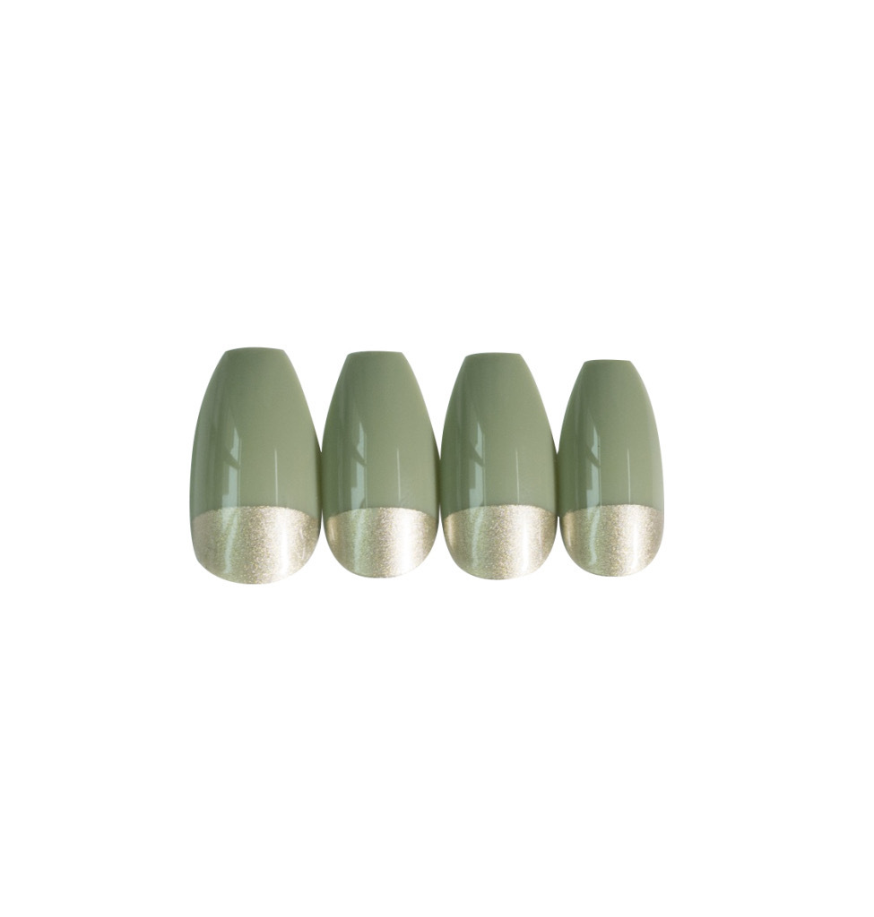 / 奶油抹茶法式半金边穿戴甲成品假指甲美甲贴片指甲贴片地摊货源