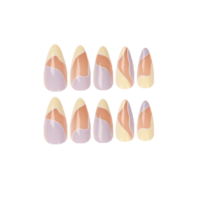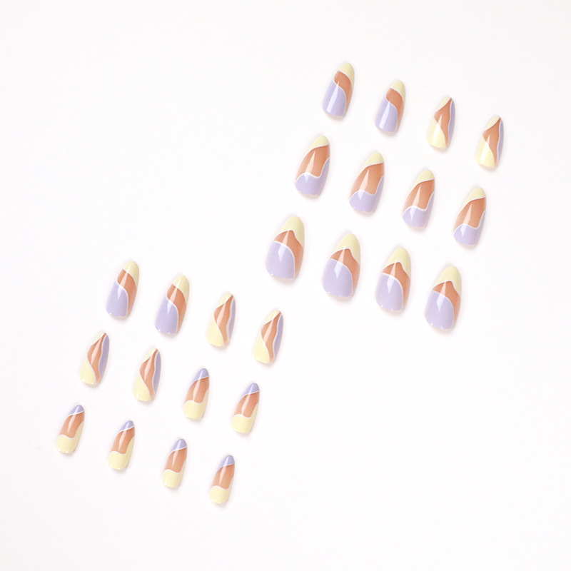 quantité de 奶油紫穿戴甲法式美甲拼色假指甲美甲贴片 跨境直购指甲贴片批发
