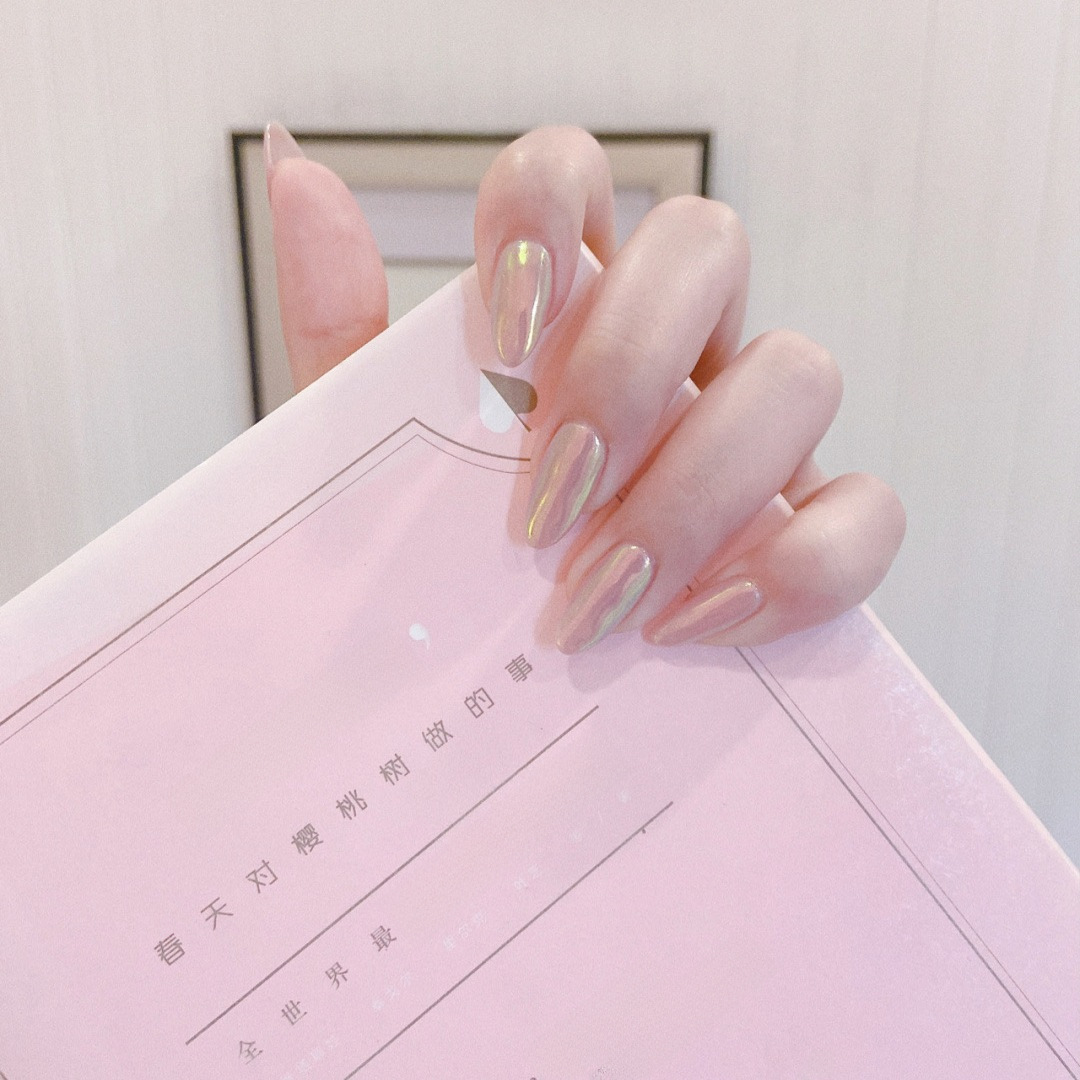 极光粉美甲尖头人鱼姬粉美甲贴片穿戴甲成品假指甲防水可拆卸甲片