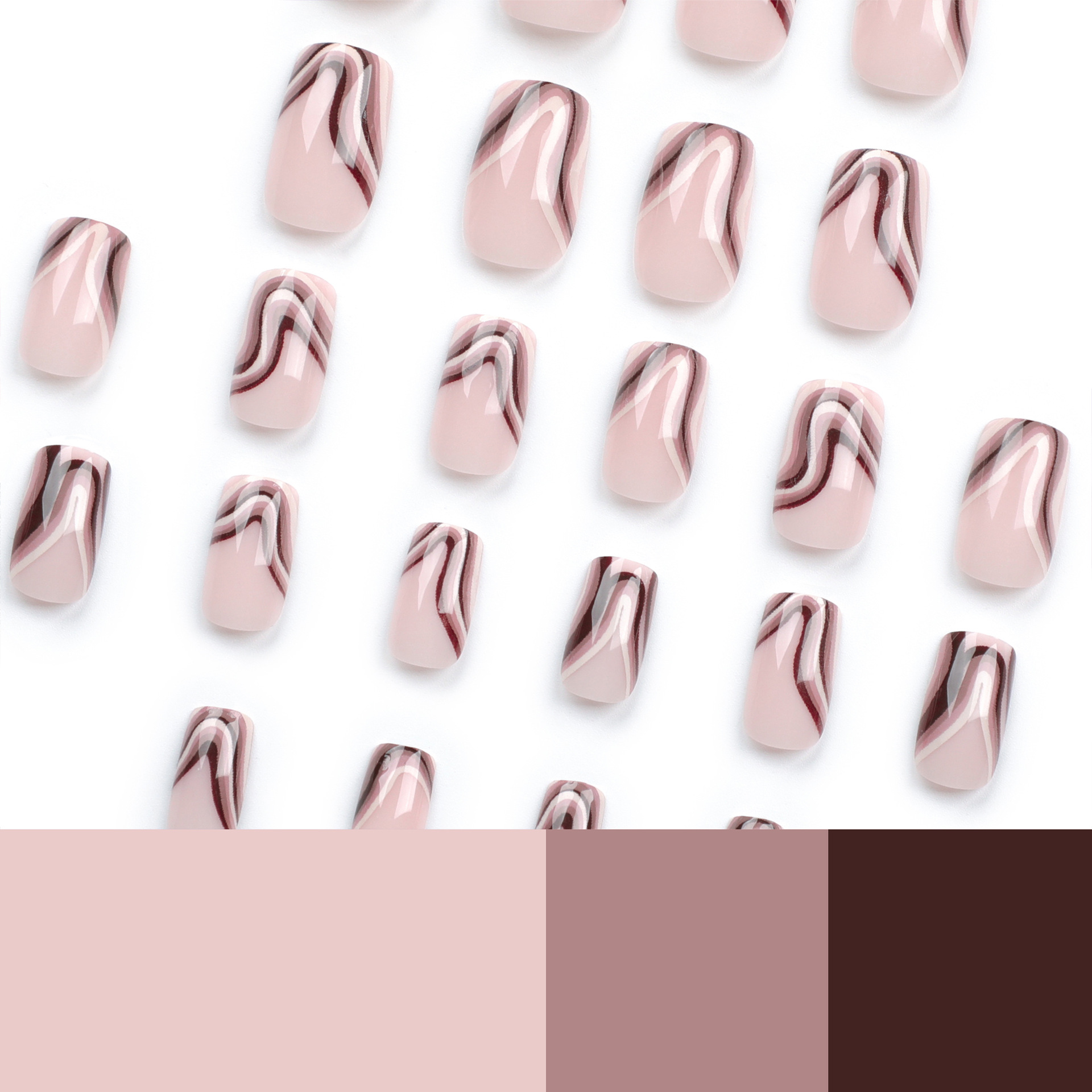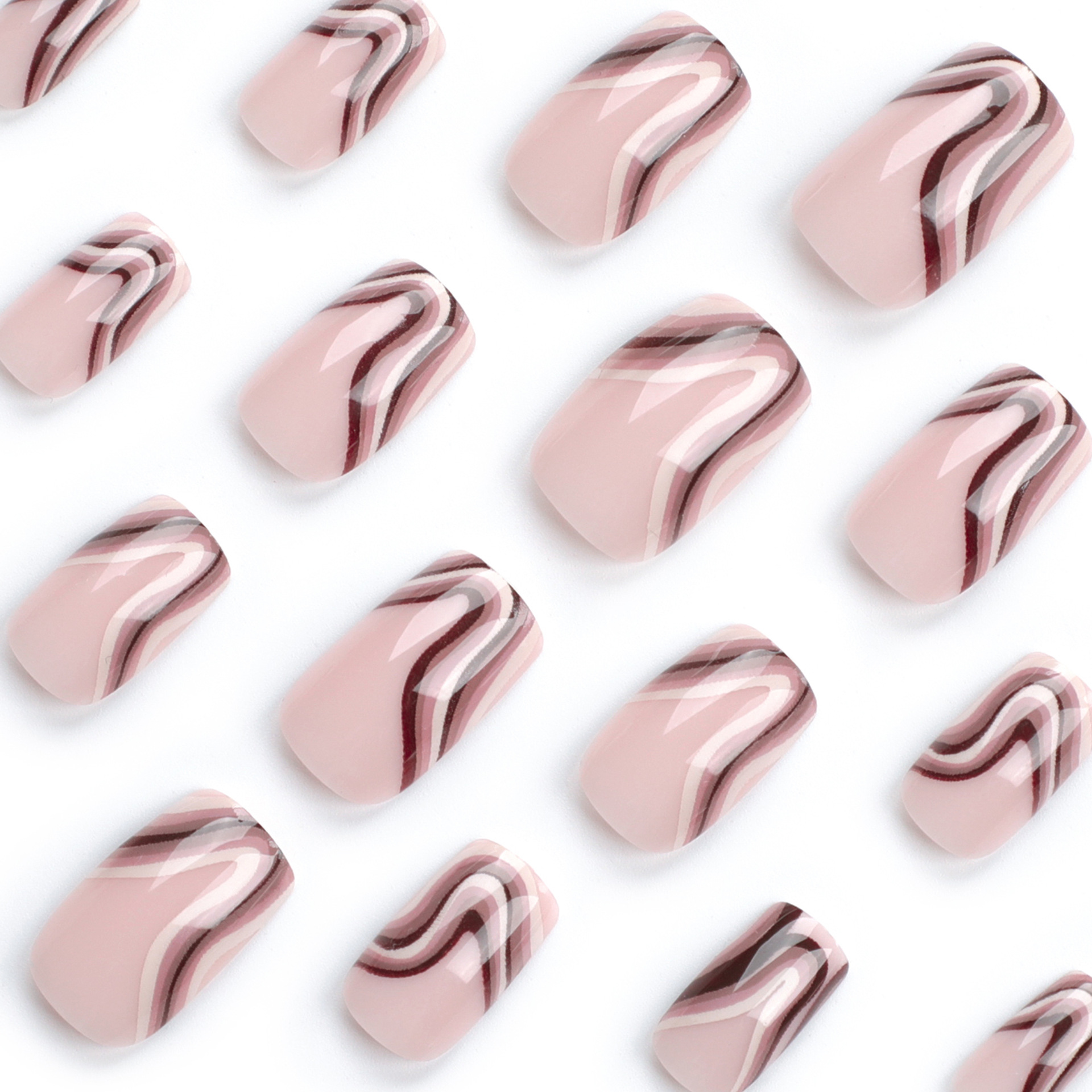 法式多色条纹波纹美甲长方甲型穿戴式欧美跨境甲片可拆卸穿戴甲片