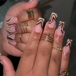 / 法式多色条纹波纹美甲长方甲型穿戴式欧美跨境甲片可拆卸穿戴甲片