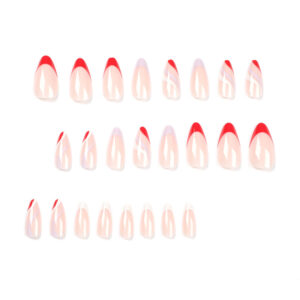 quantité de 穿戴甲批发简约法式美甲贴红白紫边线条假指甲成品甲片批发nails