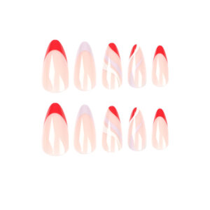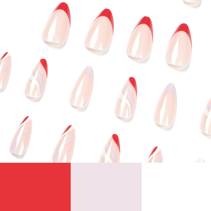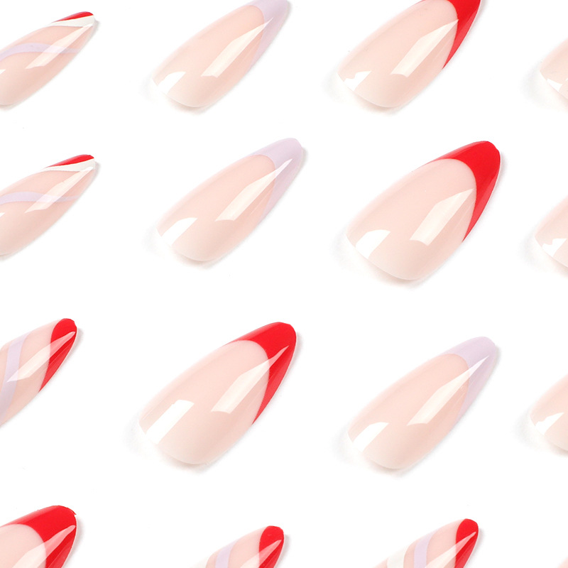 穿戴甲批发简约法式美甲贴红白紫边线条假指甲成品甲片批发nails