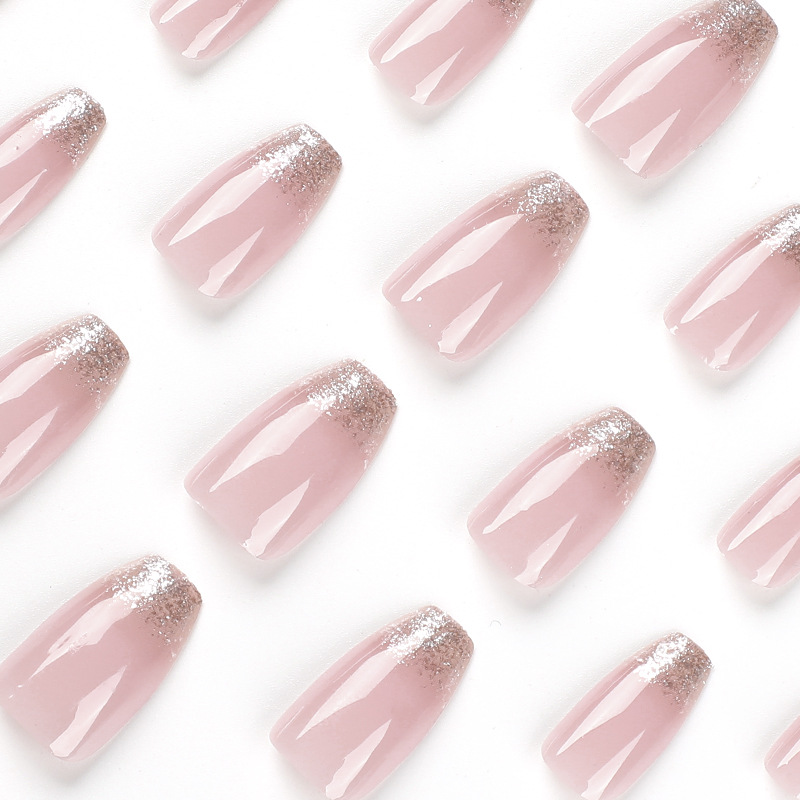 / 穿戴甲片裸粉短款芭蕾法式闪粉指甲贴片批发美甲穿戴甲批发nails