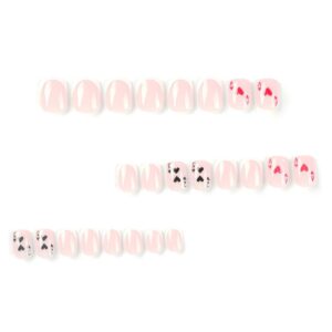 quantité de 穿戴甲甲片白色法式美甲贴片红色桃心字母黑色桃心数字短款穿戴甲
