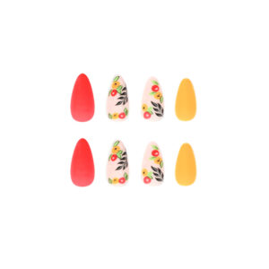 / 穿戴甲甲片磨砂红黄跳色小花假指甲片批发美甲穿戴甲中长款 nails